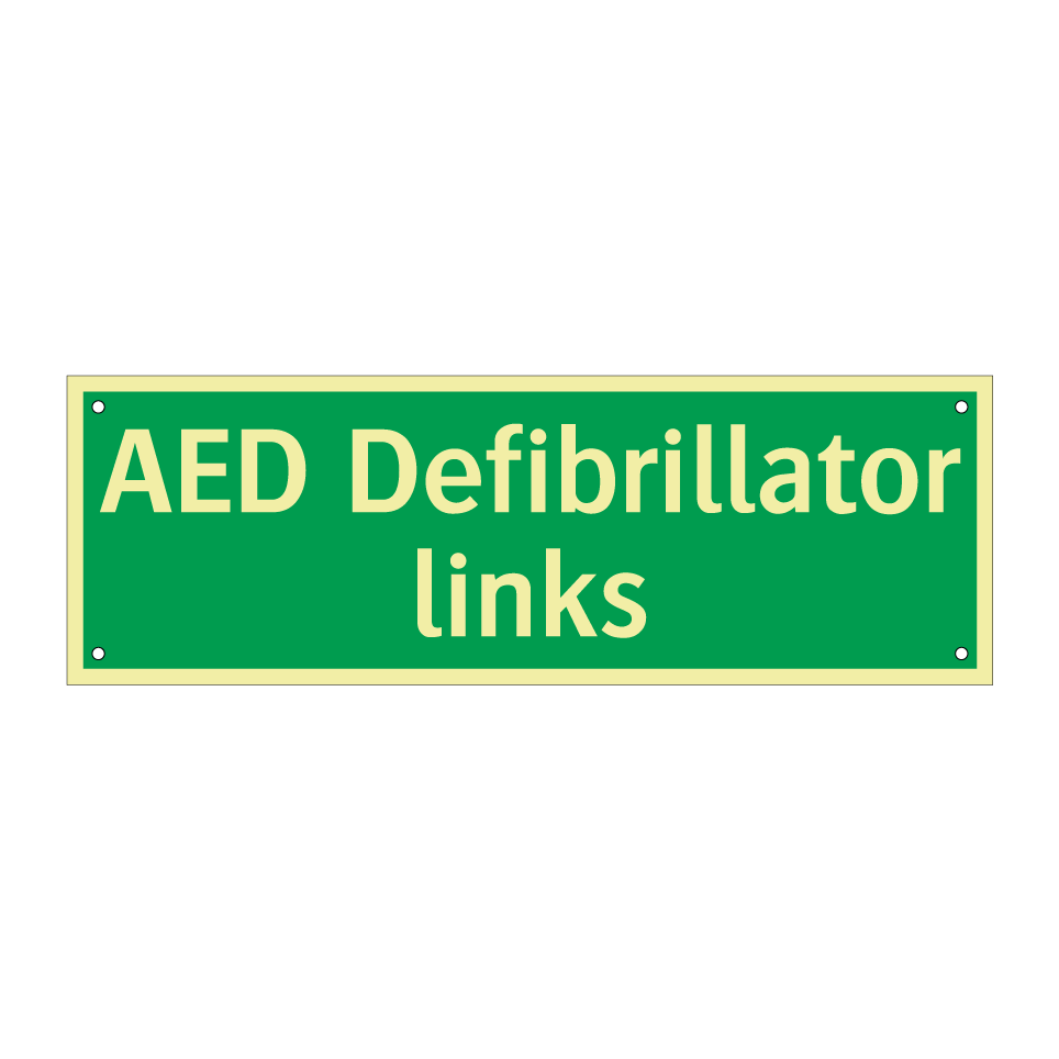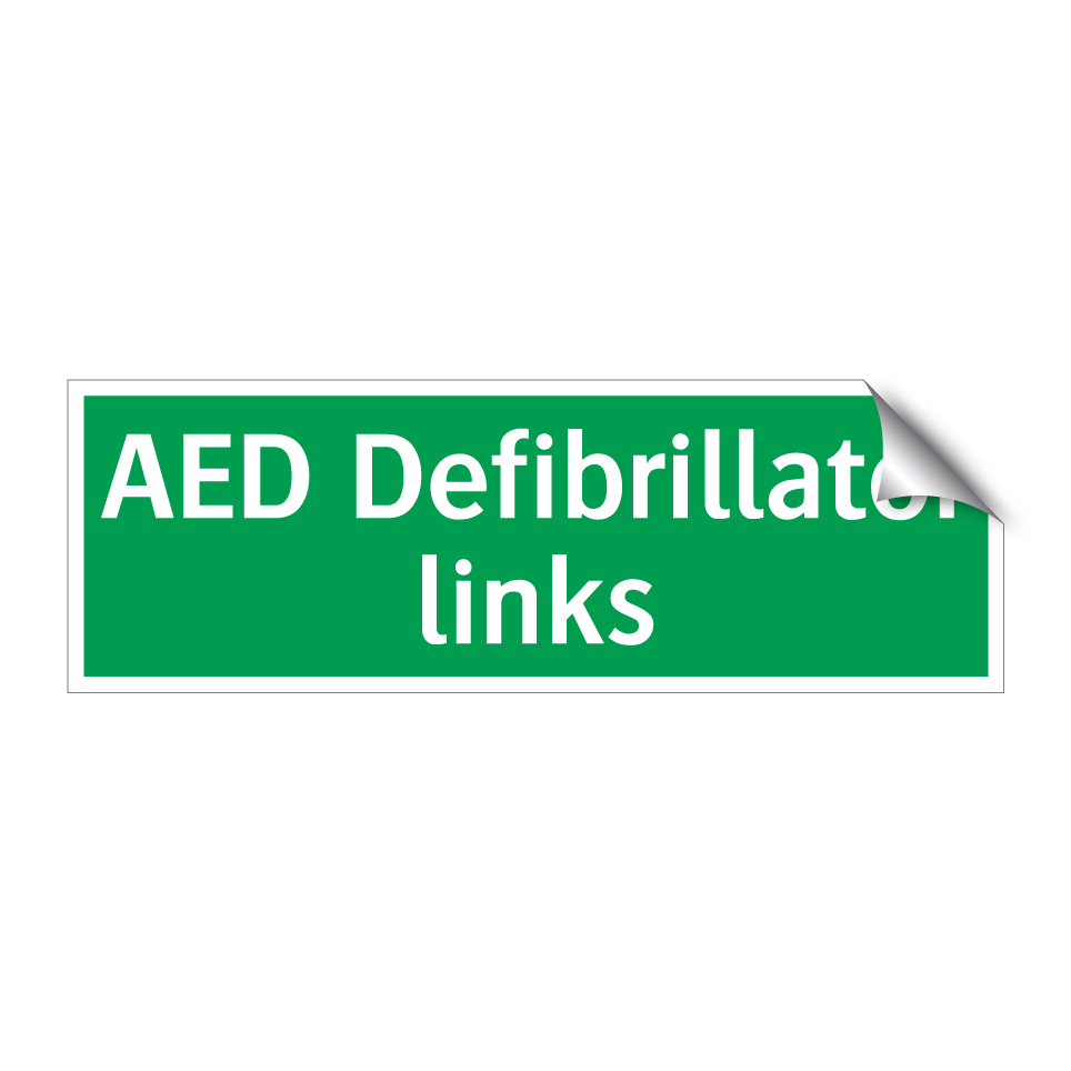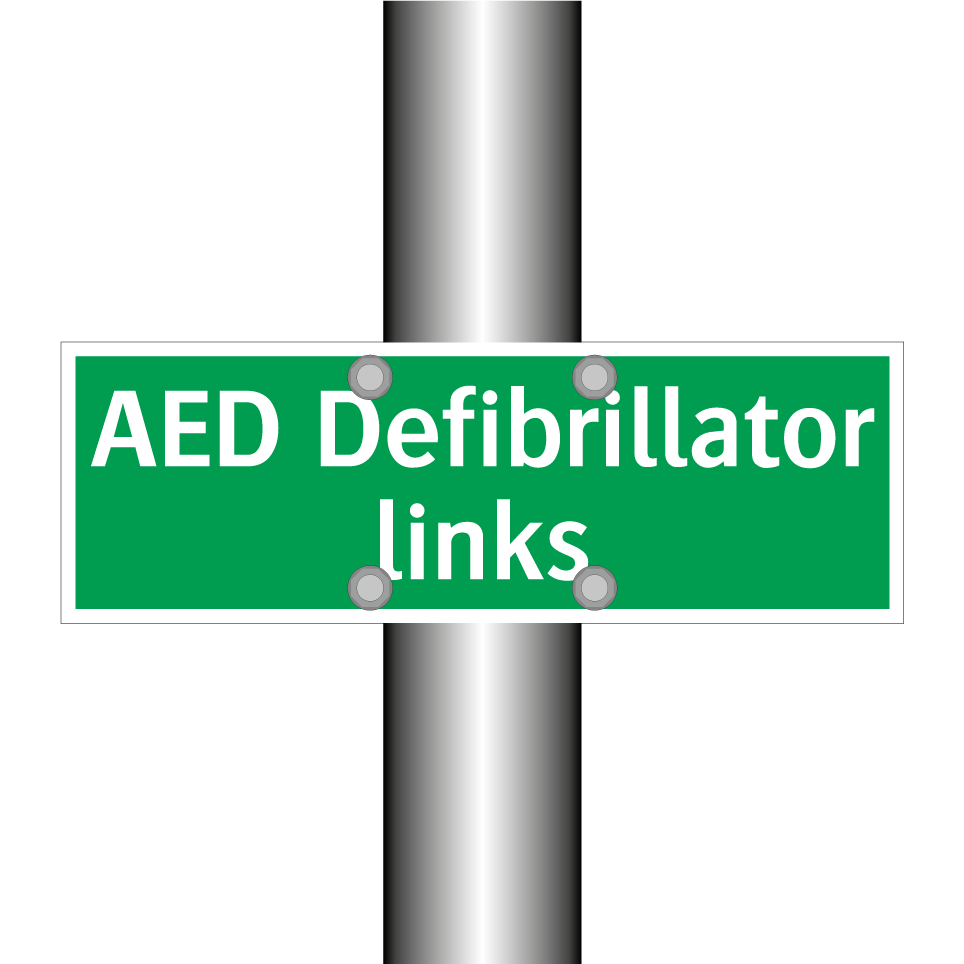 Noodbord met tekst AED Defibrillator links