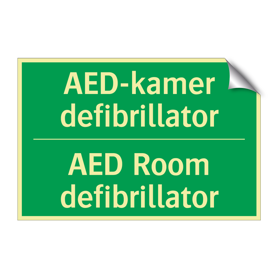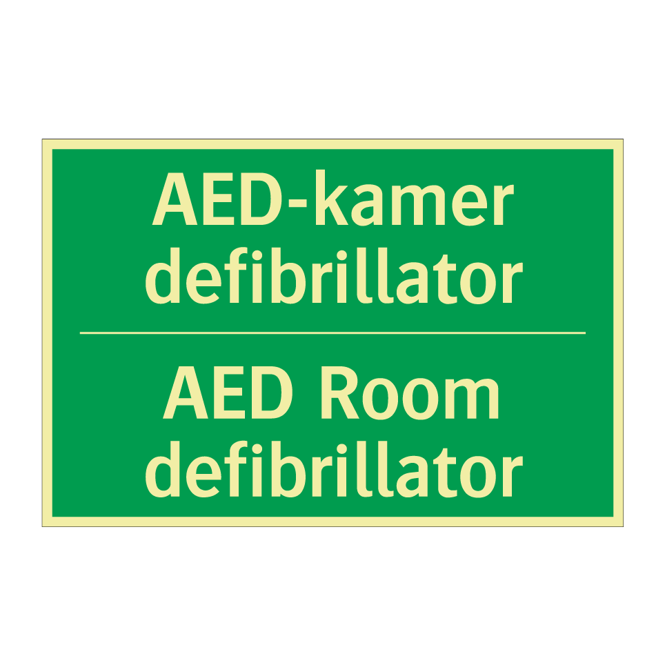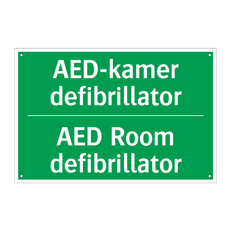 Noodbord met tekst AED-kamer defibrillator / AED Room defibrillator