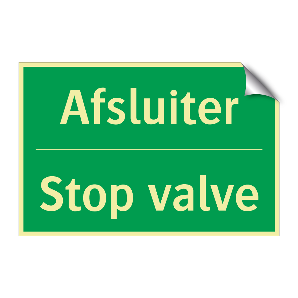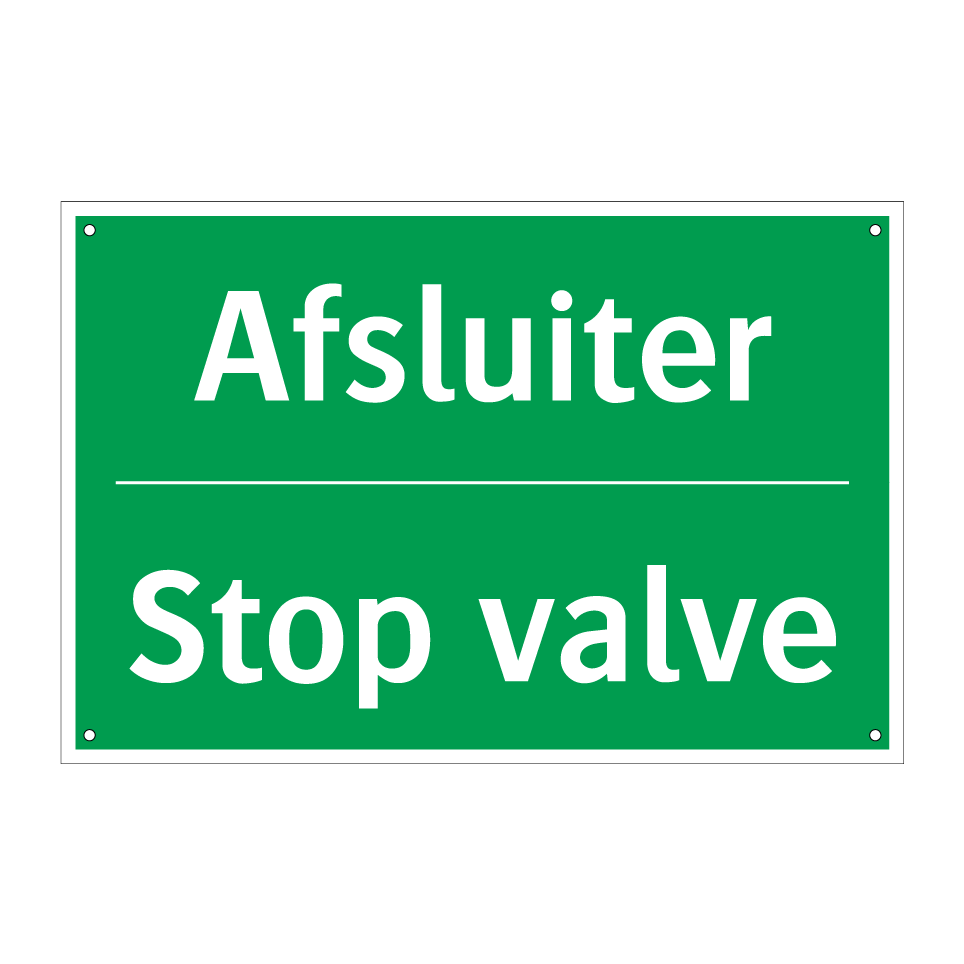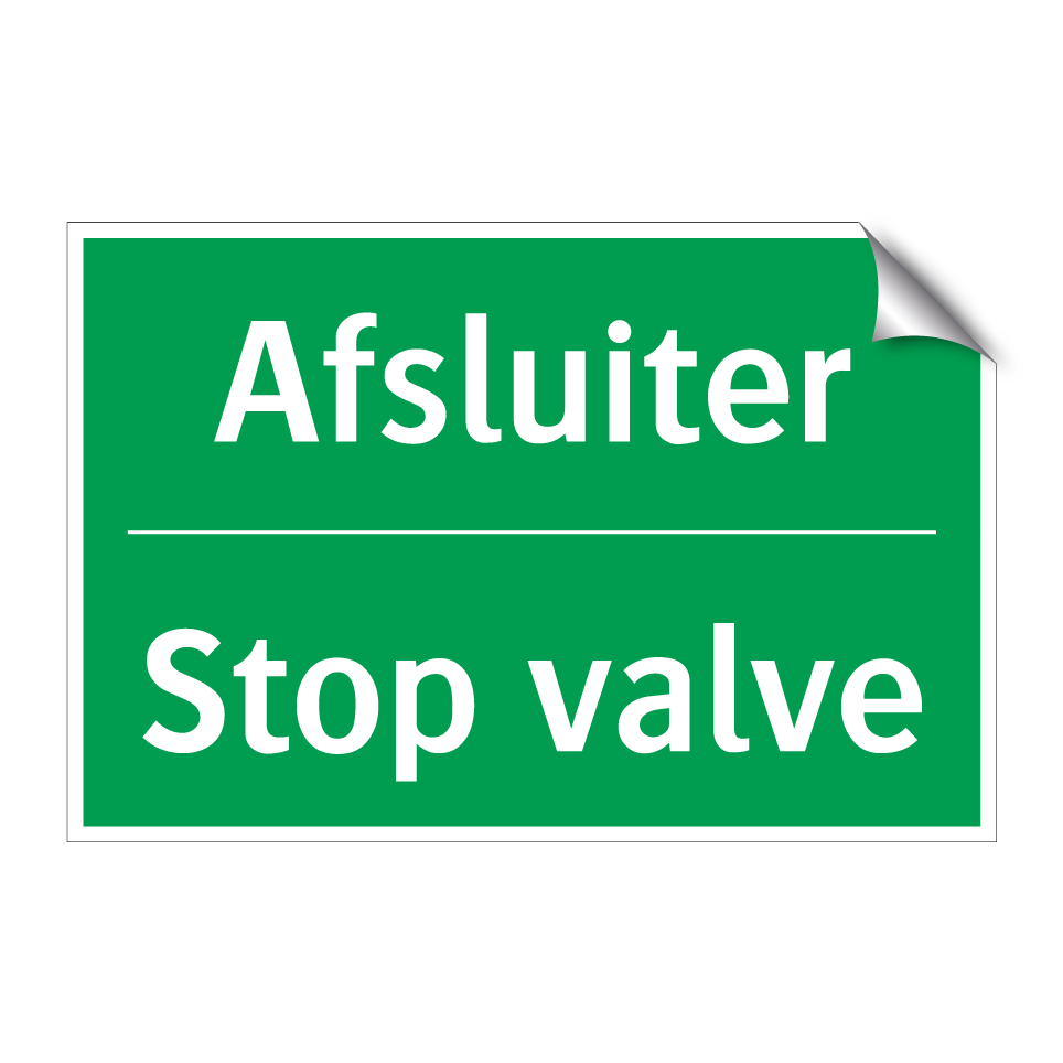 Noodbord met tekst Afsluiter / Stop valve