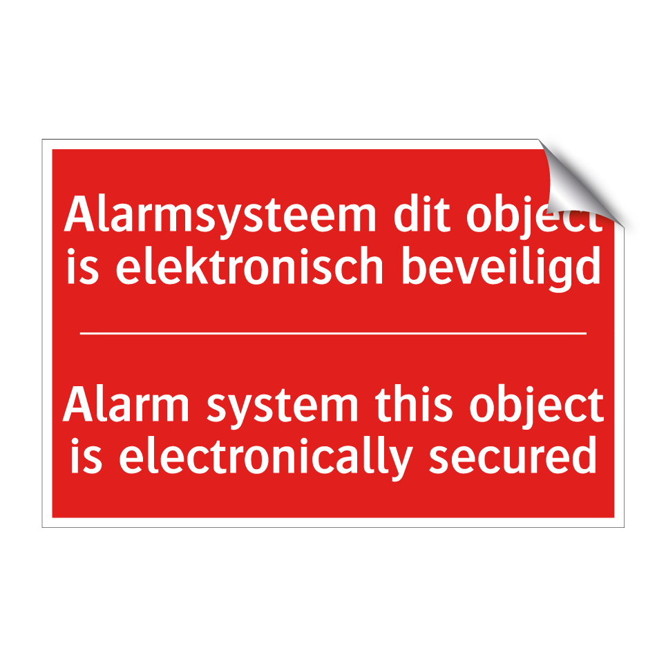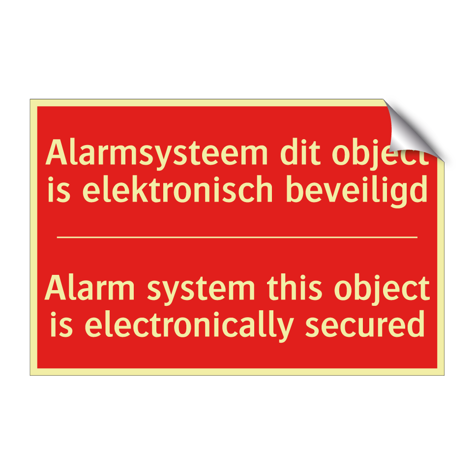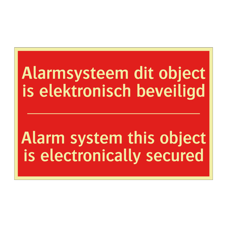 Brandbord met tekst Alarmsysteem dit object is elektronisch beveiligd / Alarm system this object is electronically secured