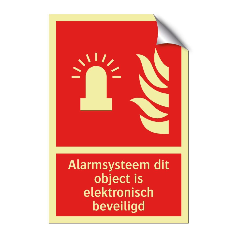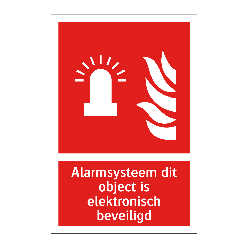Brandbord met tekst Alarmsysteem dit object is elektronisch beveiligd