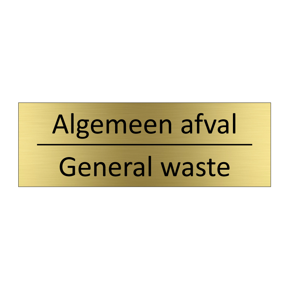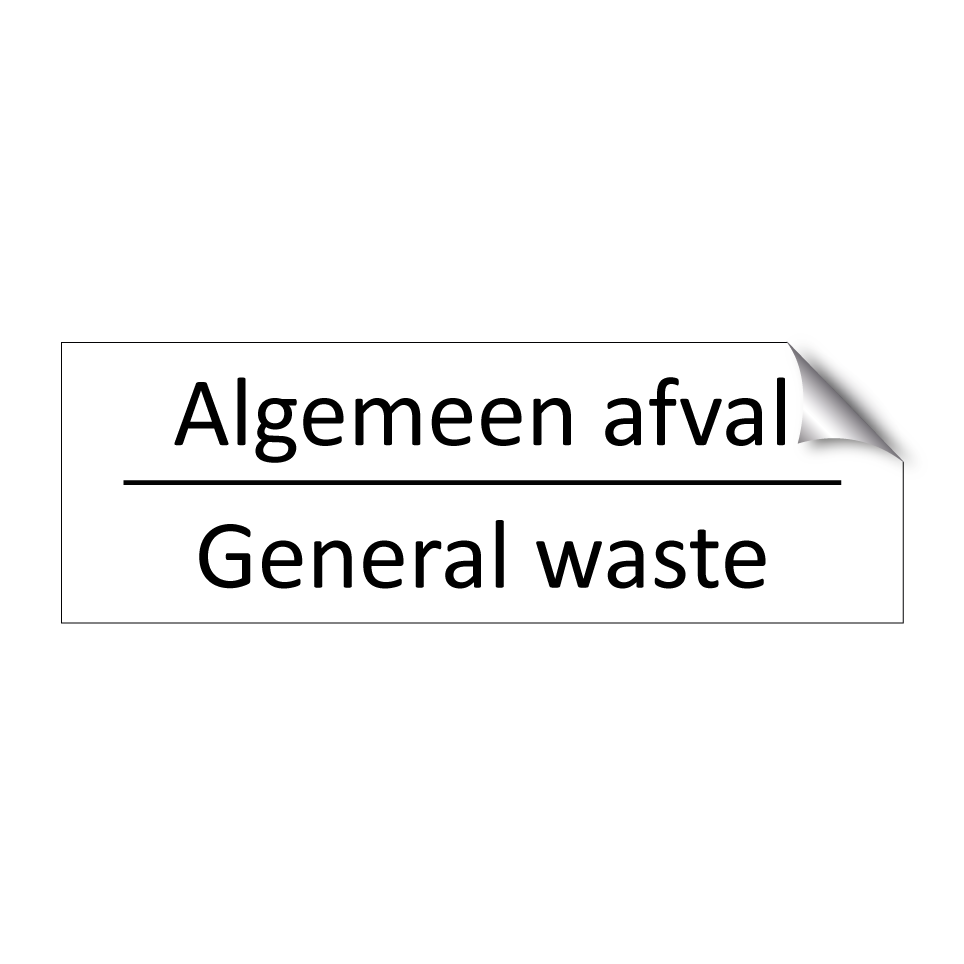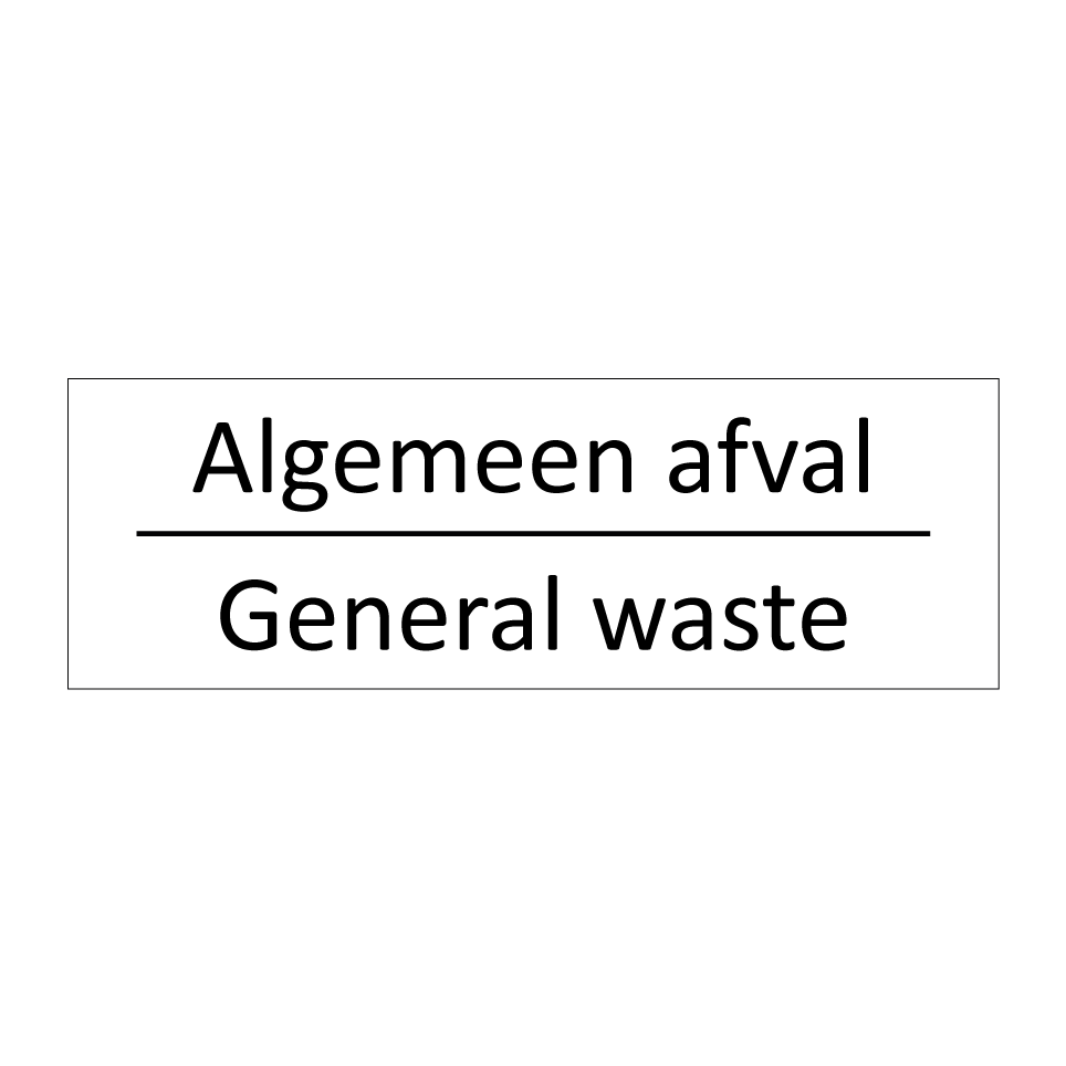 Informatiebord met tekst in het nederlands en engels. Dit bord luidt: Algemeen afval evenals met de engelse vertaling General waste.
