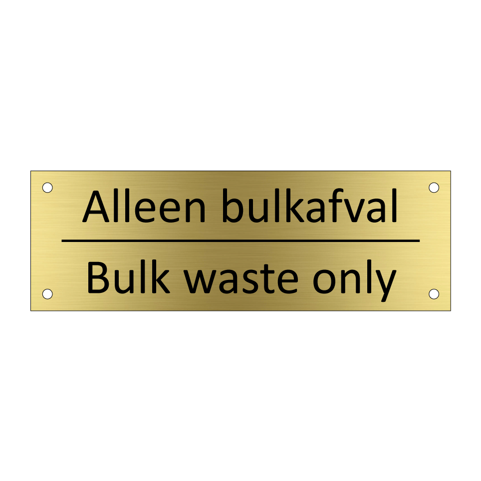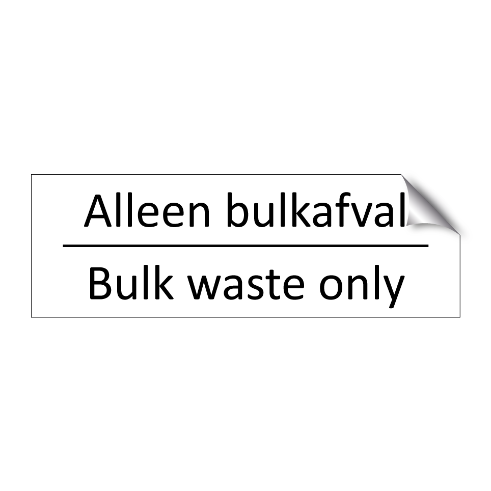 Informatiebord met tekst in het nederlands en engels. Dit bord luidt: Alleen bulkafval evenals met de engelse vertaling Bulk waste only.