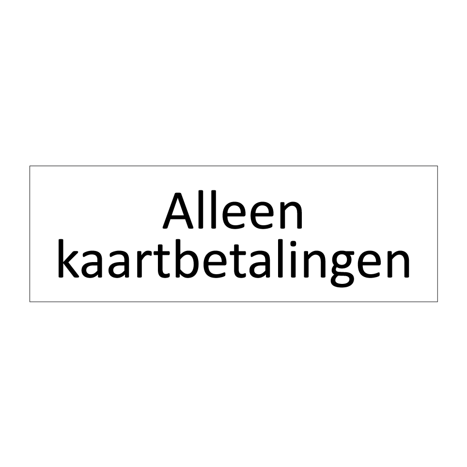 Deze bord is ideaal voor plaatsing in winkels, restaurants of elk ander bedrijf waar alleen betalingen met kaart geaccepteerd worden. Het dient als een duidelijke aankondiging voor klanten, waardoor verwarring aan de kassa wordt voorkomen. Perfect voor montage bij de ingang of bij de kassa, zorgt deze aanduiding ervoor dat uw betalingsbeleid direct zichtbaar is. Geschikt voor zowel binnen- als buitengebruik, verzekert het een soepele transactieproces.