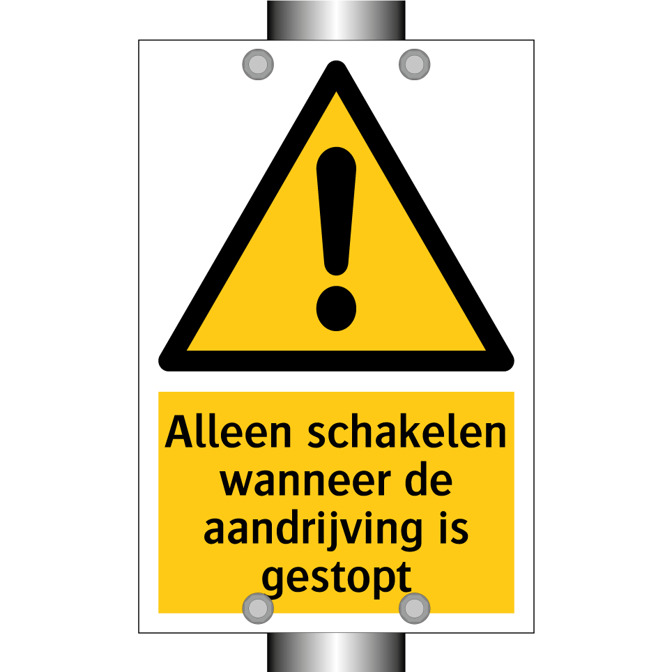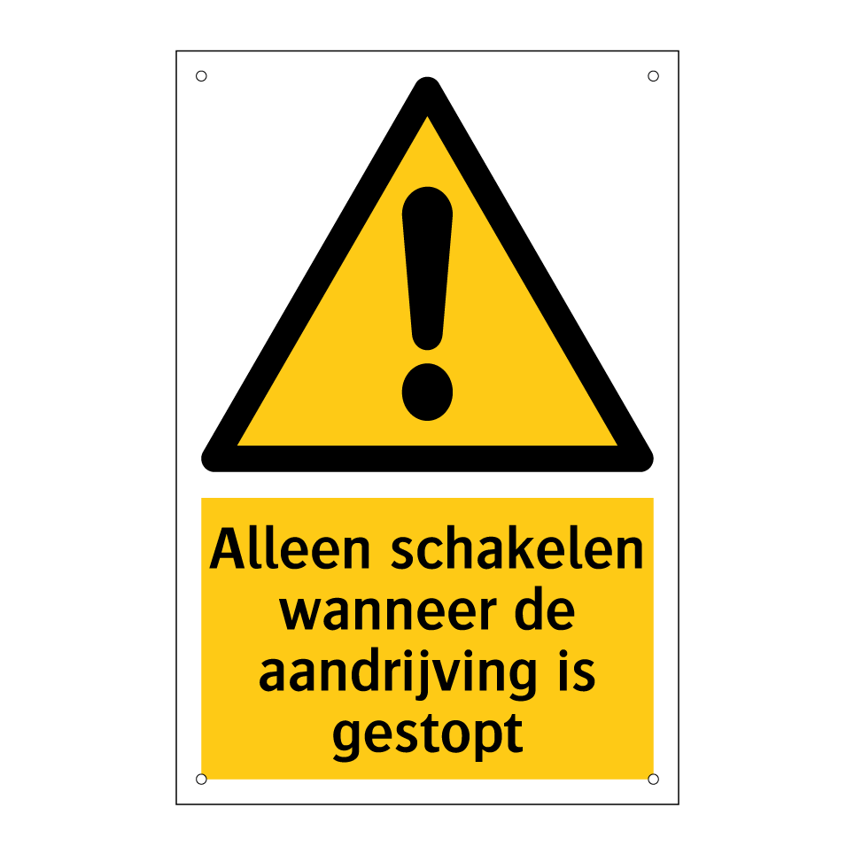Waarschuwingsbord met de tekst Alleen schakelen wanneer de aandrijving is gestopt