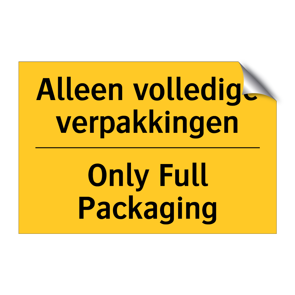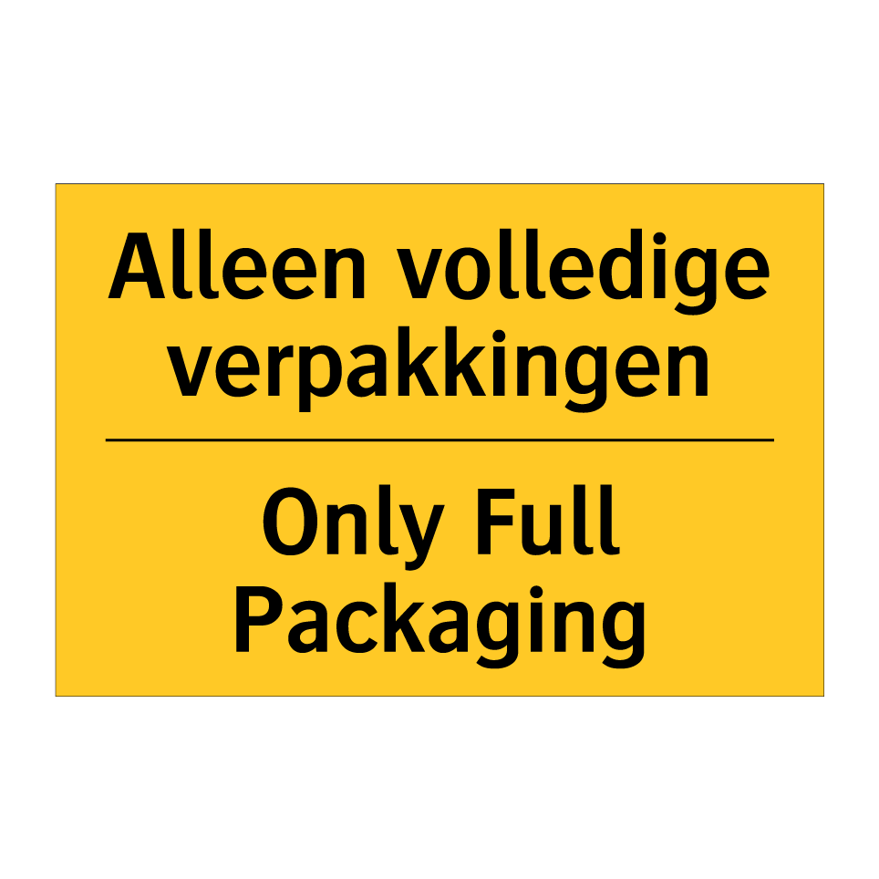Waarschuwingsbord met de tekst Alleen volledige verpakkingen / Only Full Packaging
