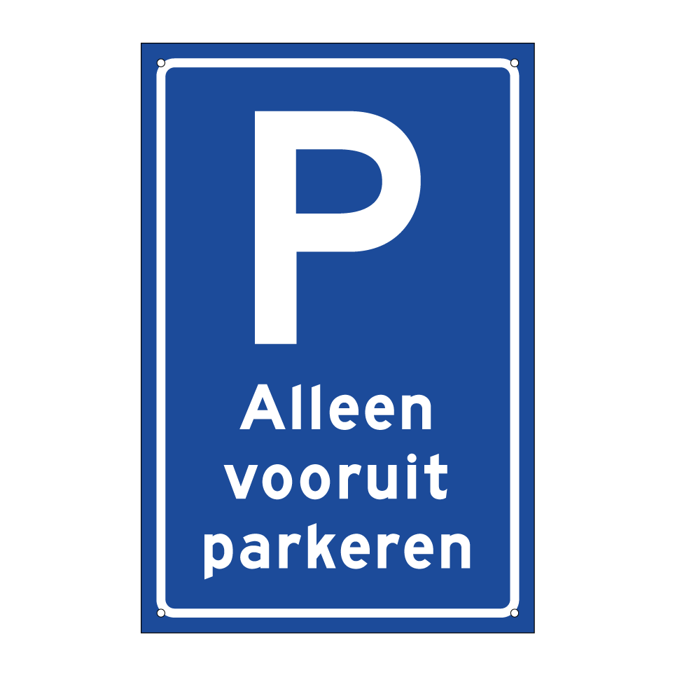 Parkeerbord met tekst Alleen vooruit parkeren