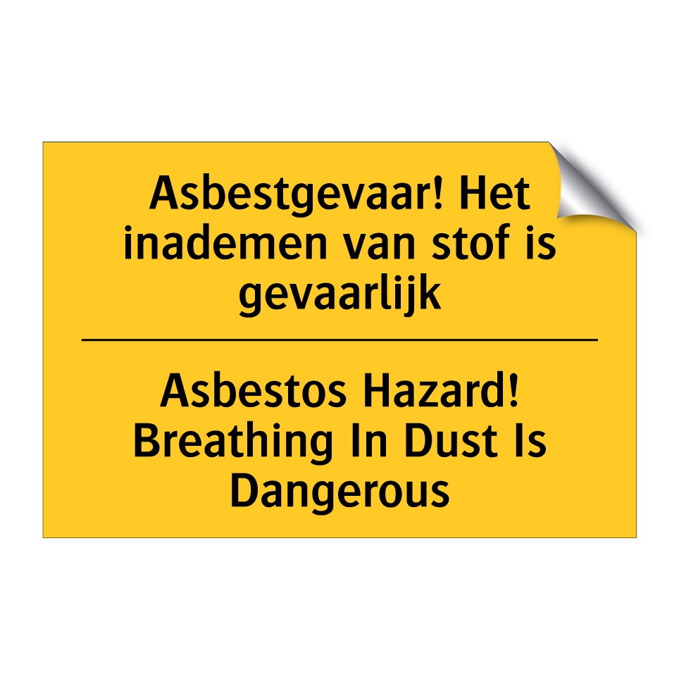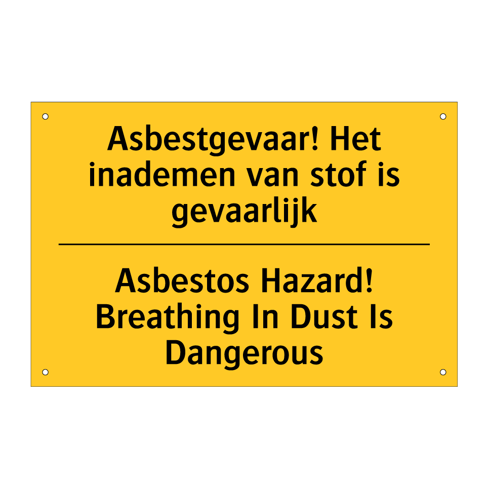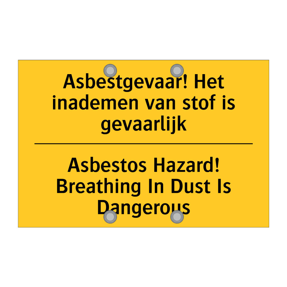 Waarschuwingsbord met de tekst Asbestgevaar! Het inademen van stof is gevaarlijk / Asbestos Hazard! Breathing In Dust Is Dangerous