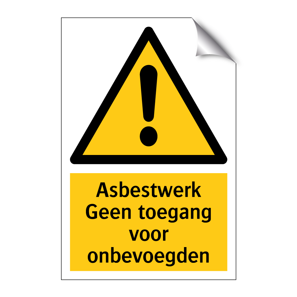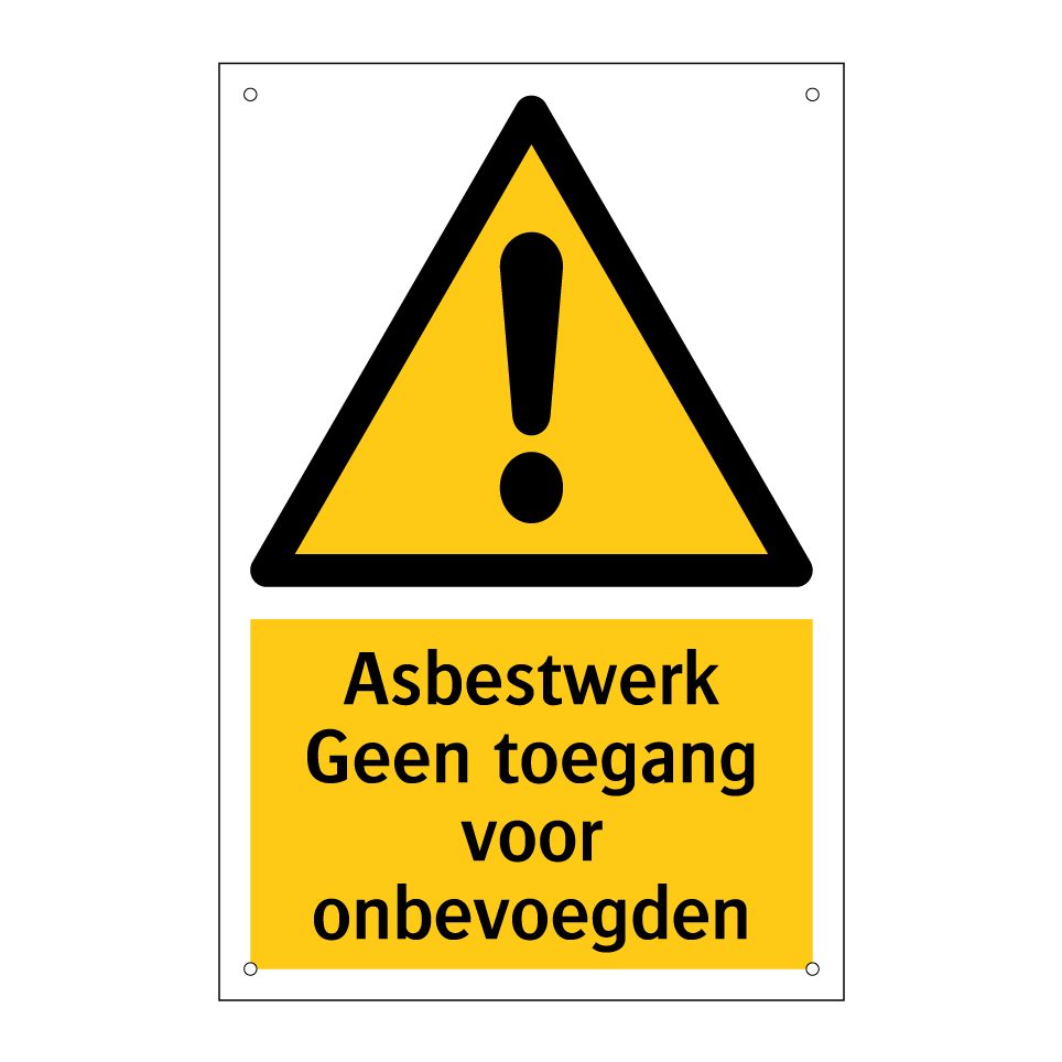Waarschuwingsbord met de tekst Asbestwerk Geen toegang voor onbevoegden