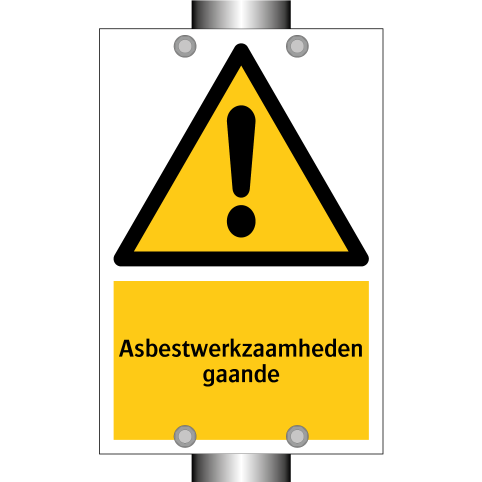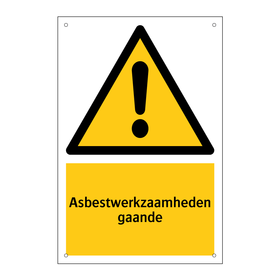 Waarschuwingsbord met de tekst Asbestwerkzaamheden gaande