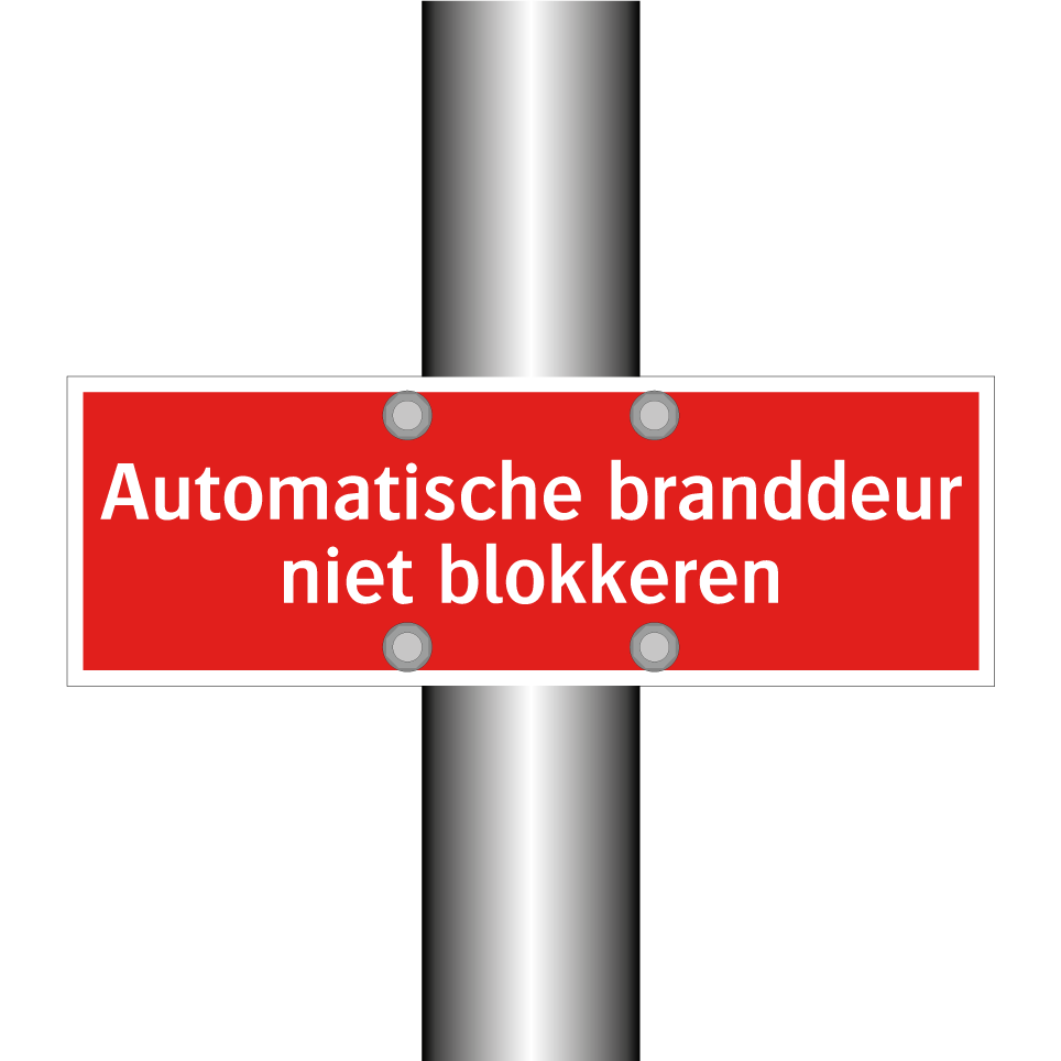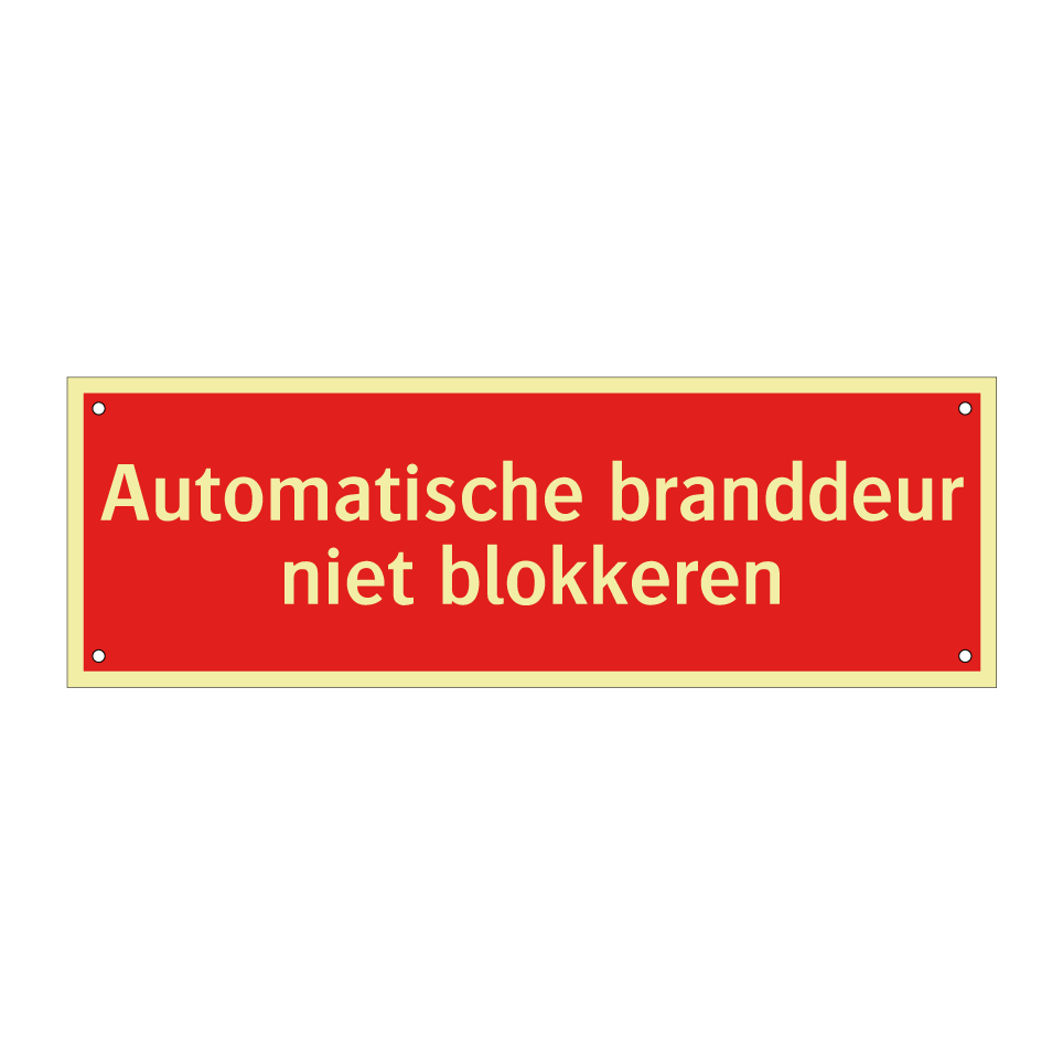 Brandbord met tekst Automatische branddeur niet blokkeren