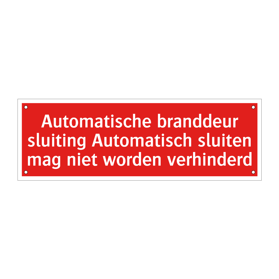 Brandbord met tekst Automatische branddeur sluiting Automatisch sluiten mag niet worden verhinderd