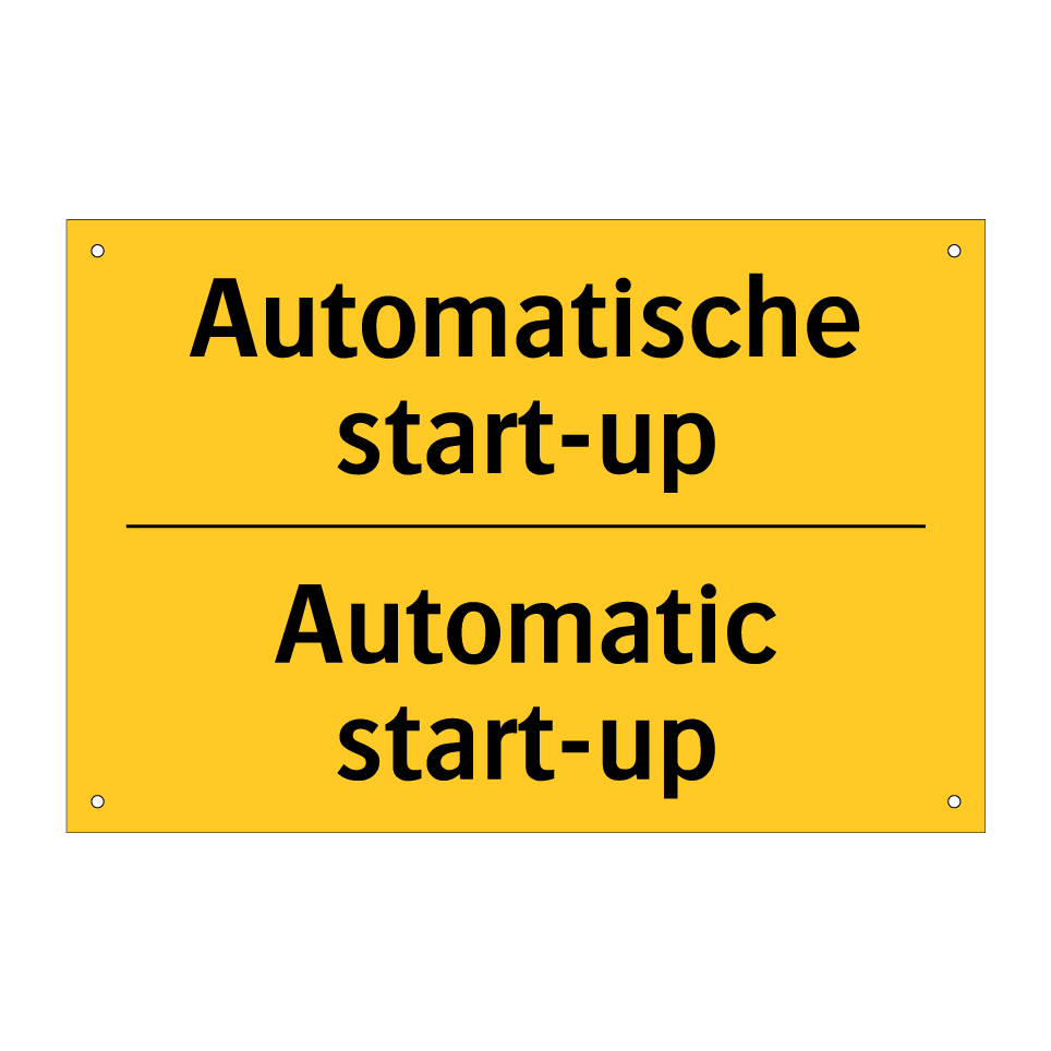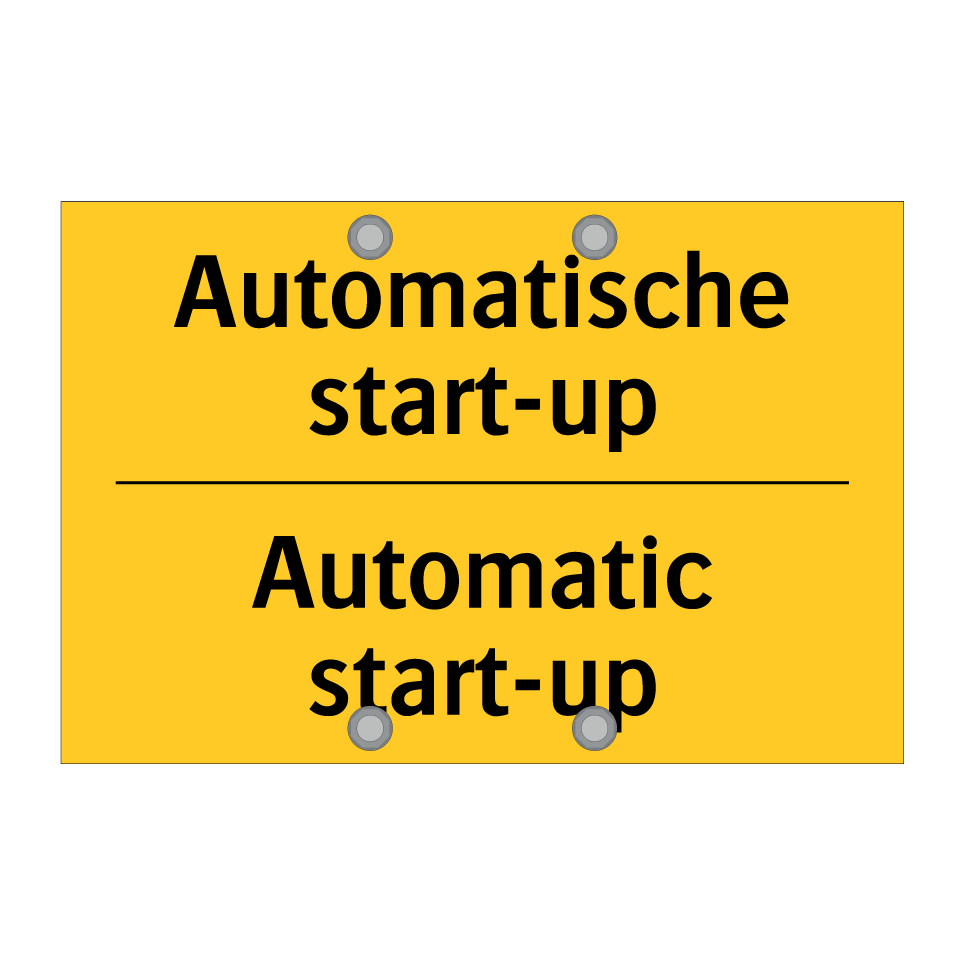 Waarschuwingsbord met de tekst Automatische start-up / Automatic start-up