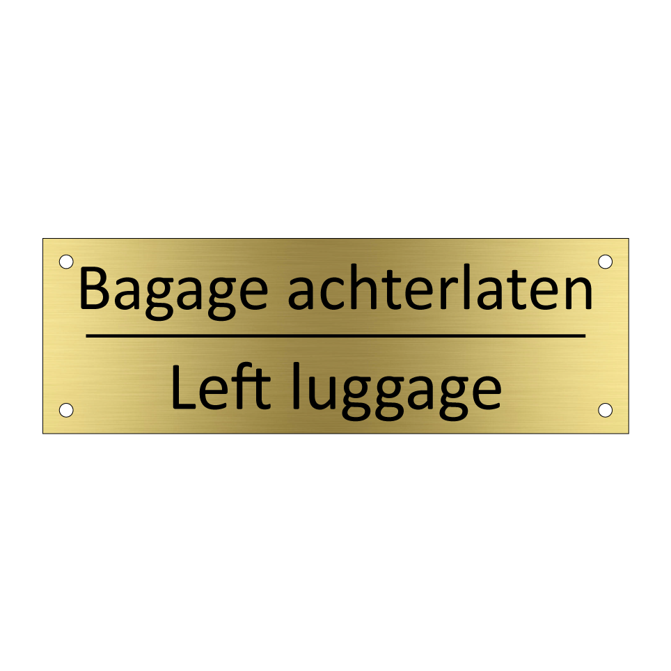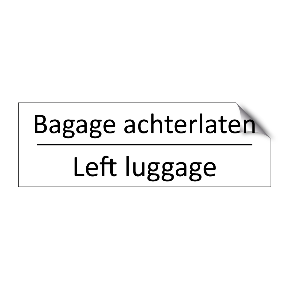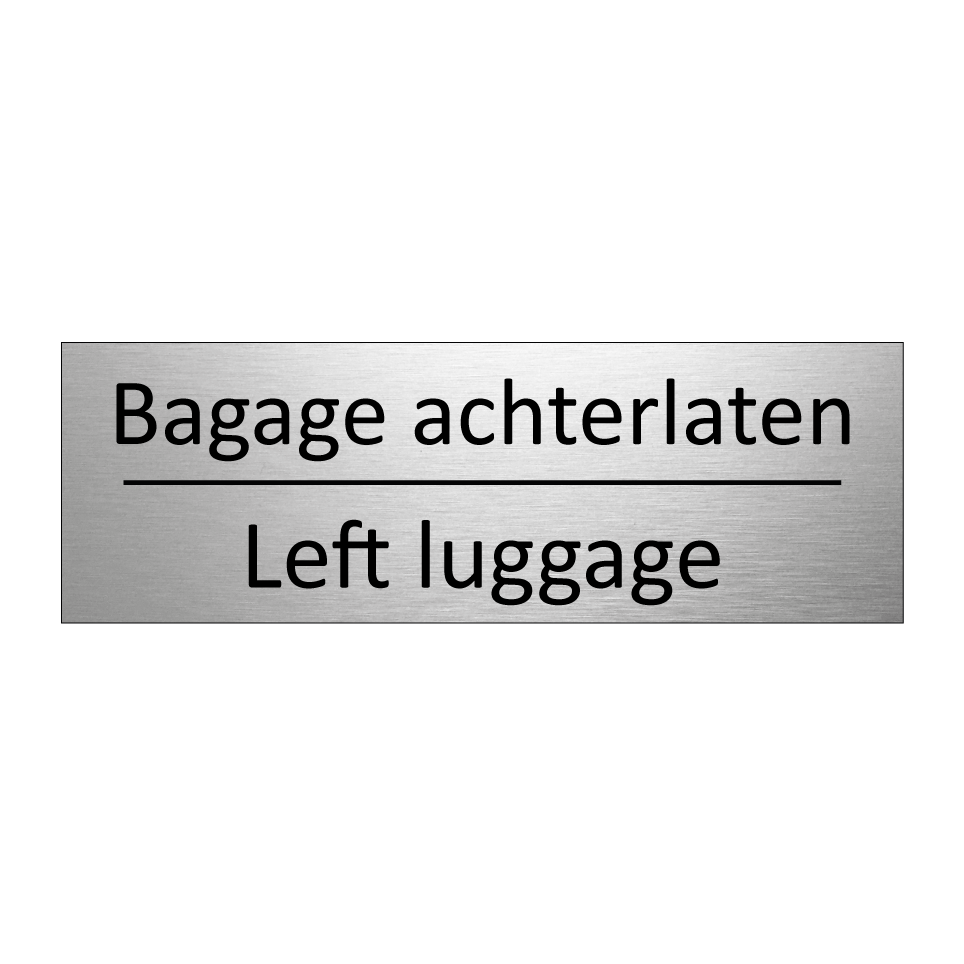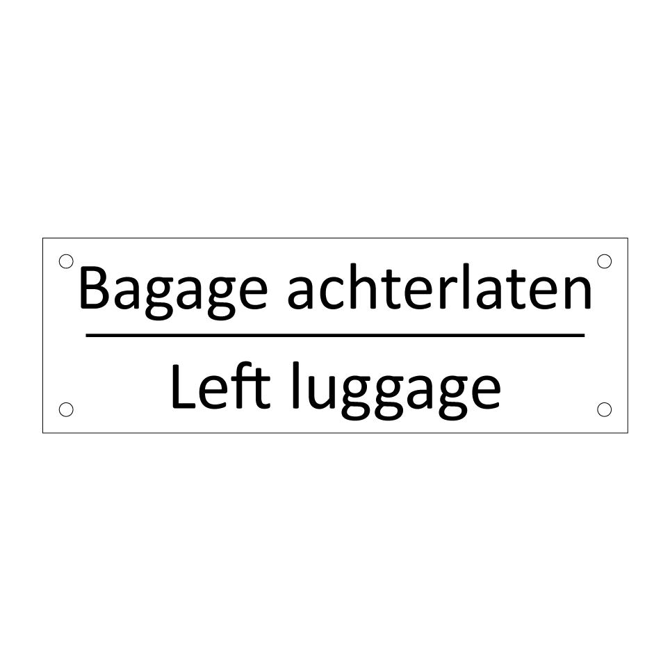 Informatiebord met tekst in het nederlands en engels. Dit bord luidt: Bagage achterlaten evenals met de engelse vertaling Left luggage.