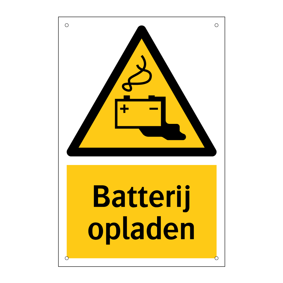 Waarschuwingsbord met de tekst Batterij opladen