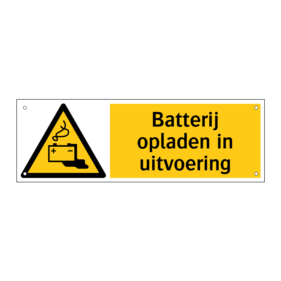 Waarschuwingsbord met de tekst Batterij opladen in uitvoering