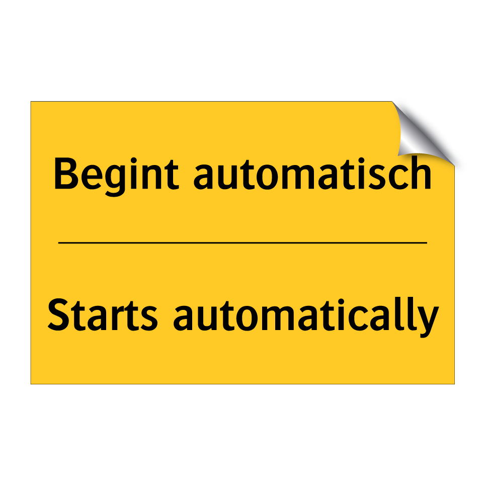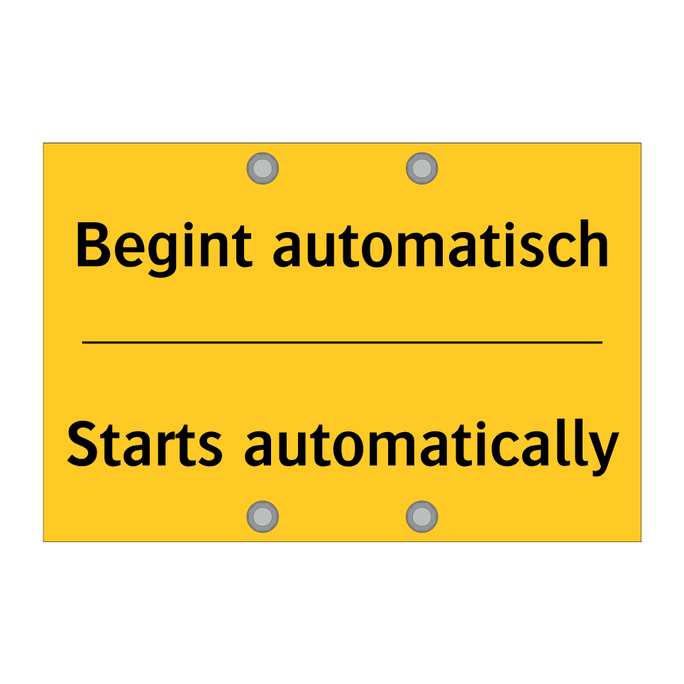 Waarschuwingsbord met de tekst Begint automatisch / Starts automatically
