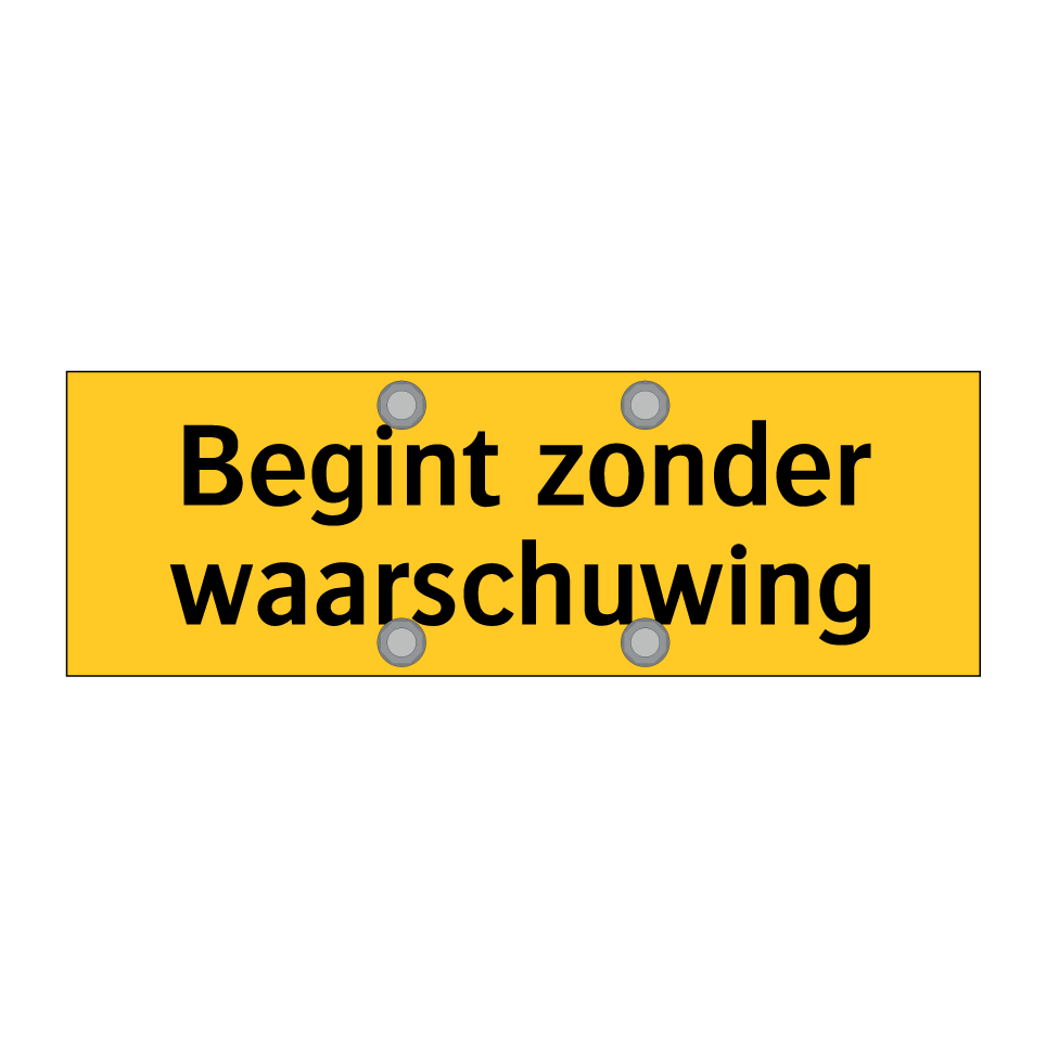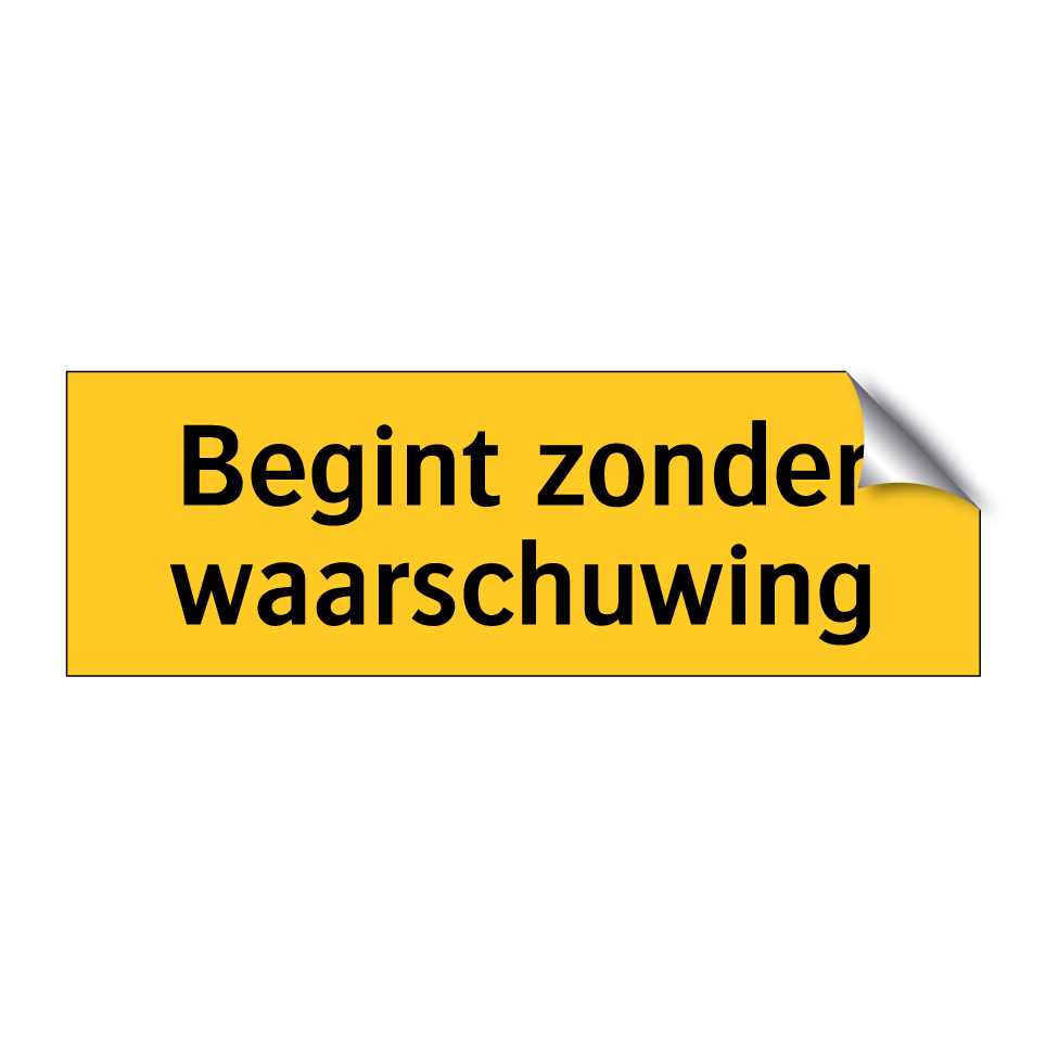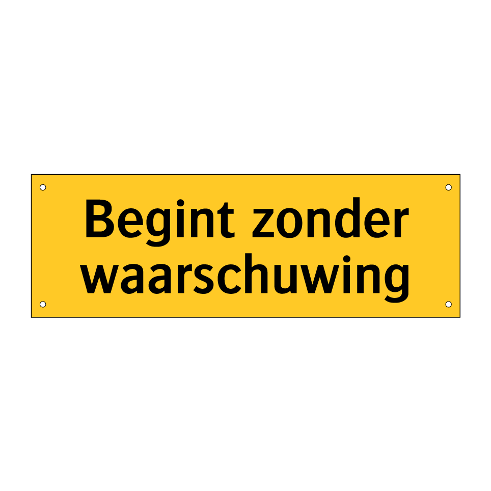 Waarschuwingsbord met de tekst Begint zonder waarschuwing
