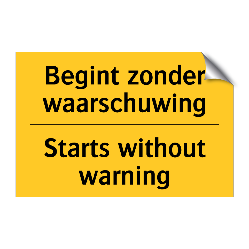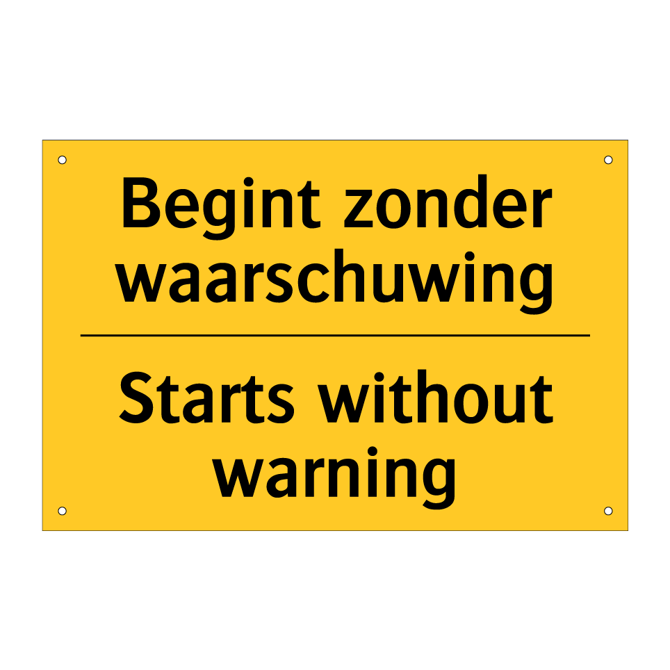 Waarschuwingsbord met de tekst Begint zonder waarschuwing / Starts without warning