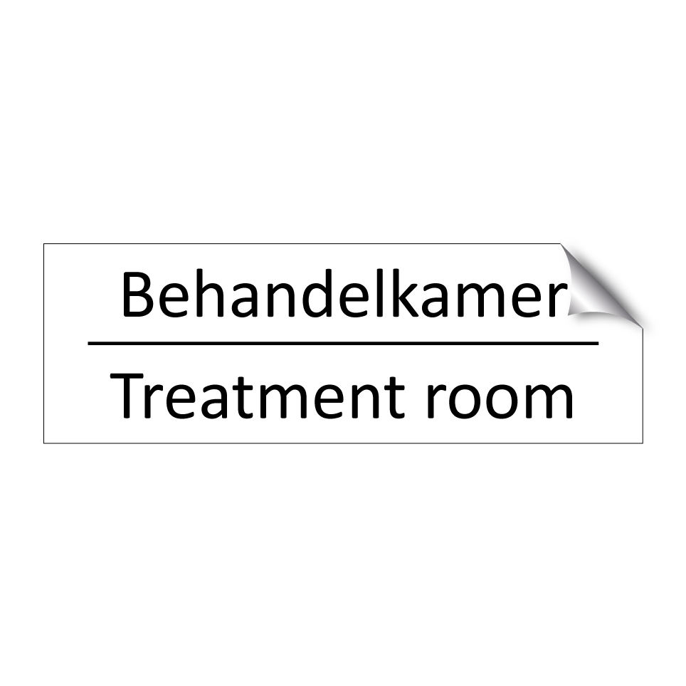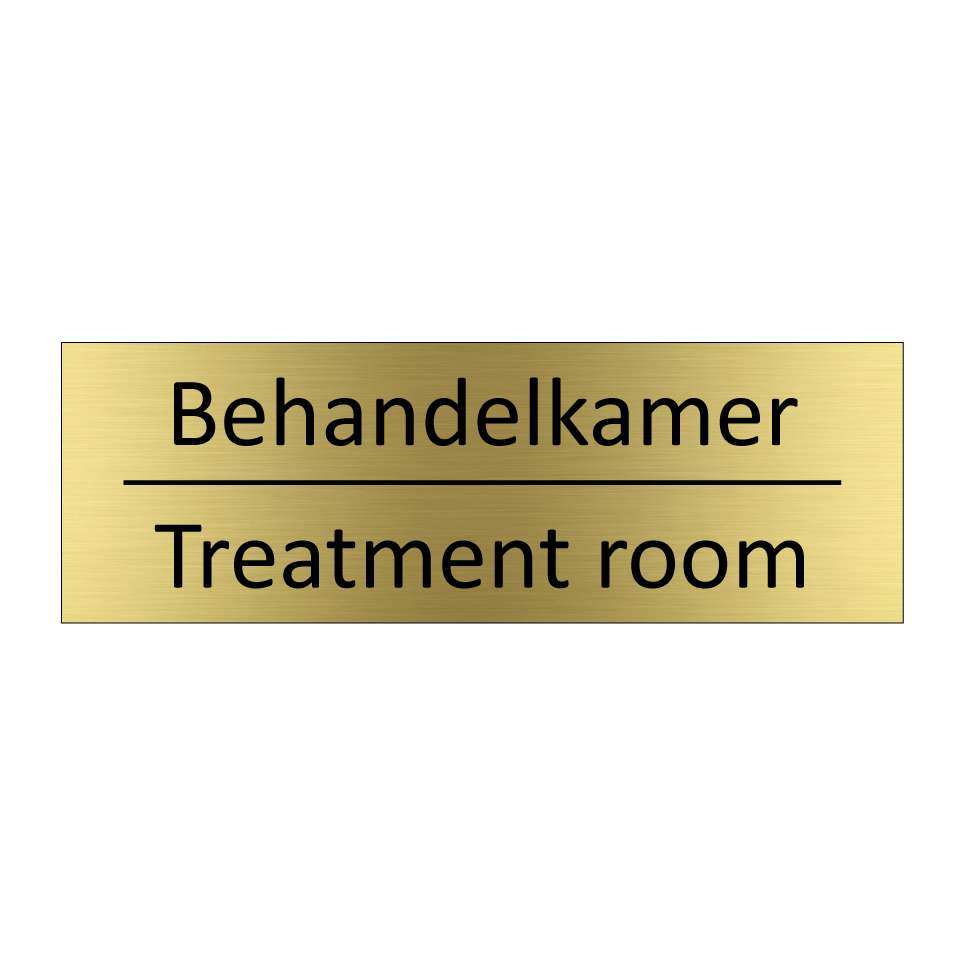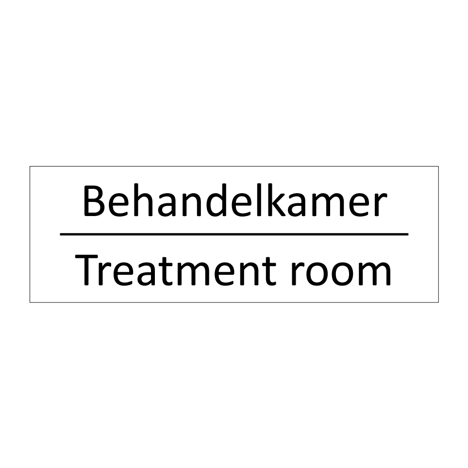 Informatiebord met tekst in het nederlands en engels. Dit bord luidt: Behandelkamer evenals met de engelse vertaling Treatment room.