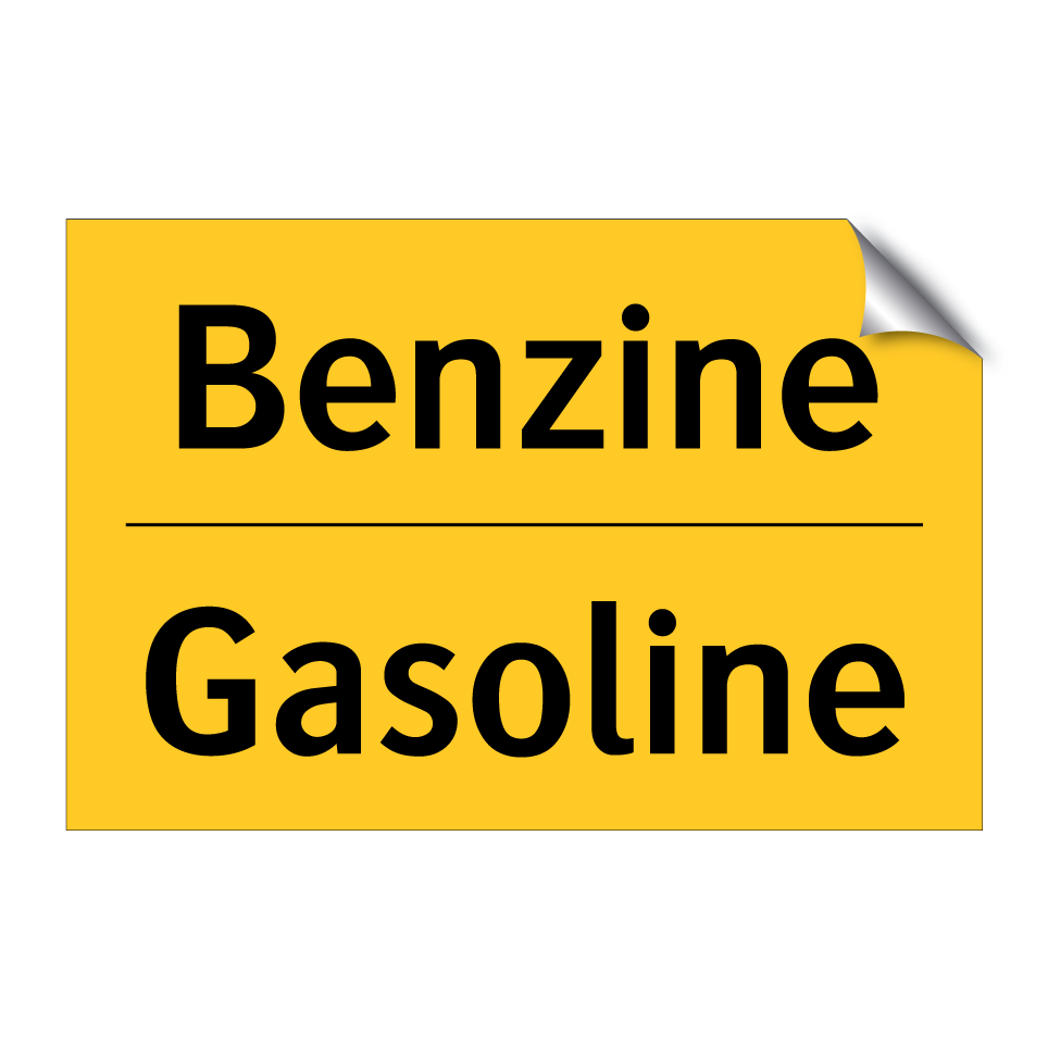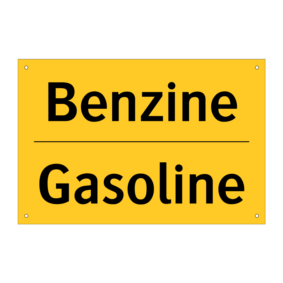 Waarschuwingsbord met de tekst Benzine / Gasoline