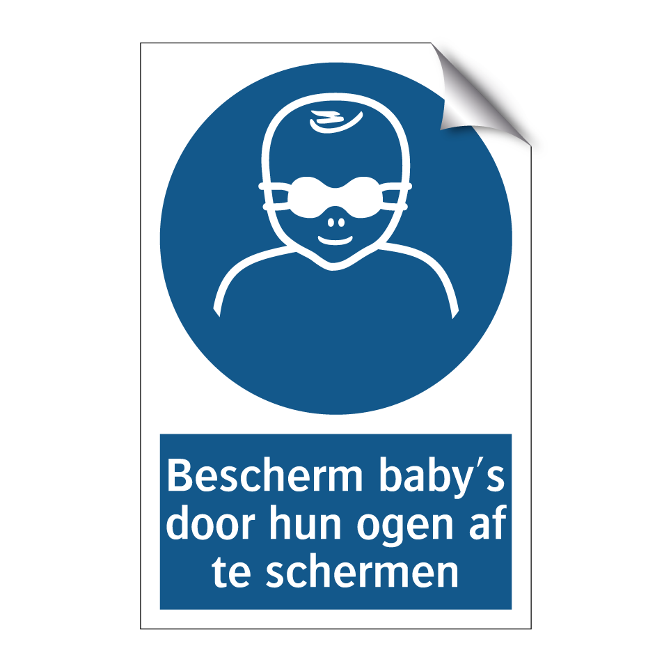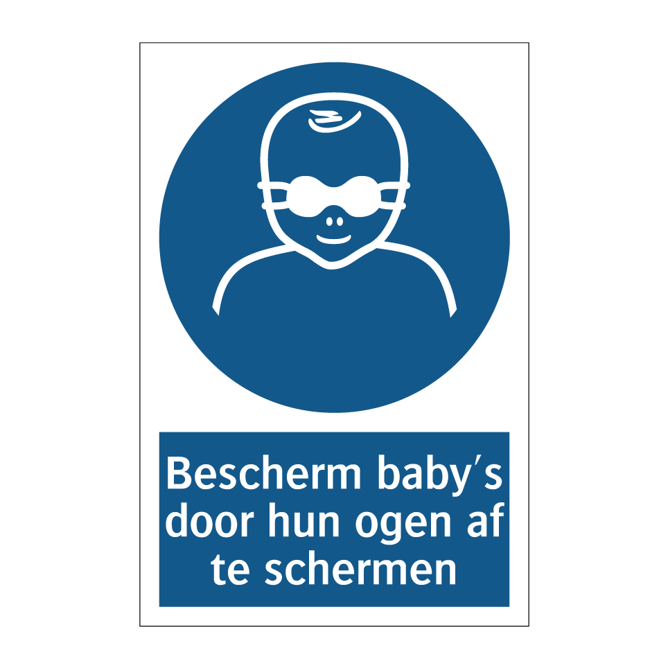 Verplichte bord met de tekst Bescherm baby's door hun ogen af te schermen