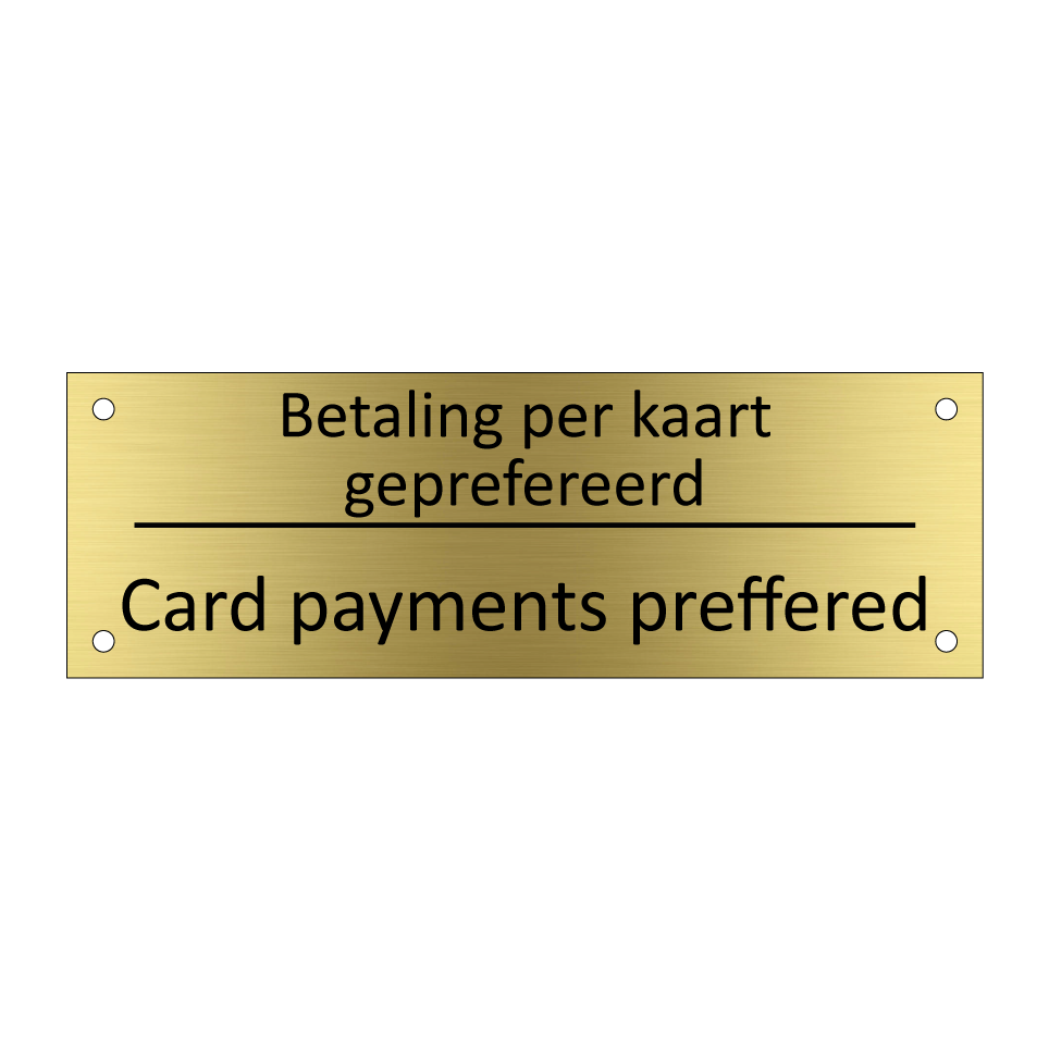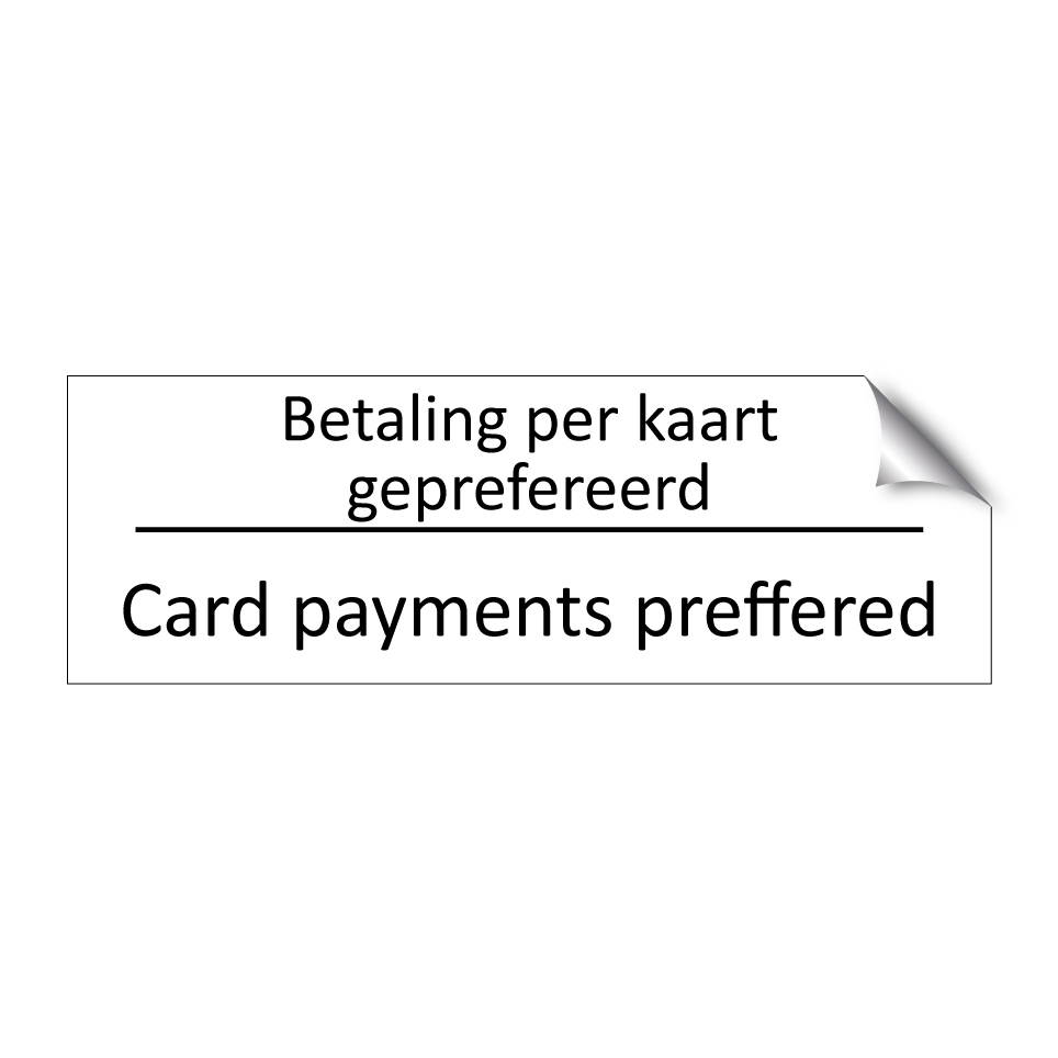 Informatiebord met tekst in het nederlands en engels. Dit bord luidt: Betaling per kaart geprefereerd evenals met de engelse vertaling Card payments preffered.