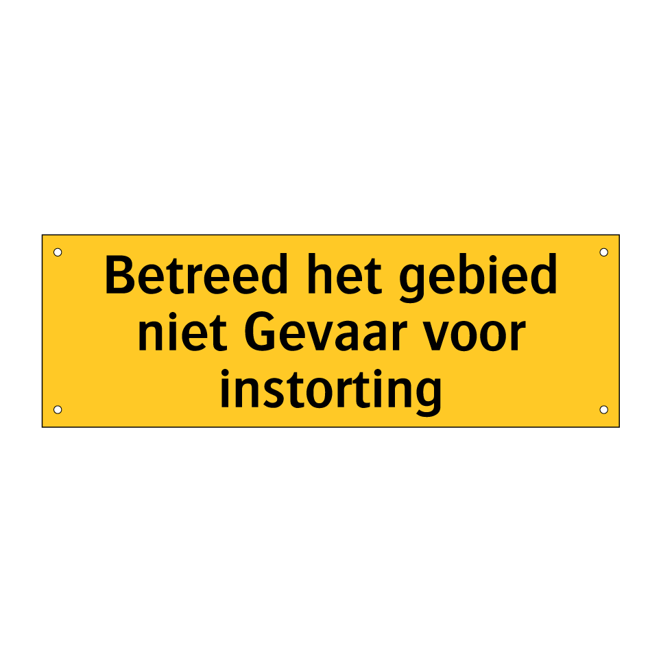Deze waarschuwingsbord is essentieel voor het waarborgen van de veiligheid in risicovolle gebieden. Plaats deze bord op bouwplaatsen, bij instabiele structuren of in gebieden met instortingsgevaar om mensen te waarschuwen voor de dreiging. De opvallende gele achtergrond en zwarte tekst zorgen ervoor dat de boodschap duidelijk en direct zichtbaar is. Ideaal voor gebruik in industriële omgevingen, mijnen, en andere locaties waar instortingsgevaar aanwezig is. Door deze waarschuwingsbord te plaatsen, kunt u effectief voorkomen dat onbevoegden het gevaarlijke gebied betreden en zo ongelukken vermijden.