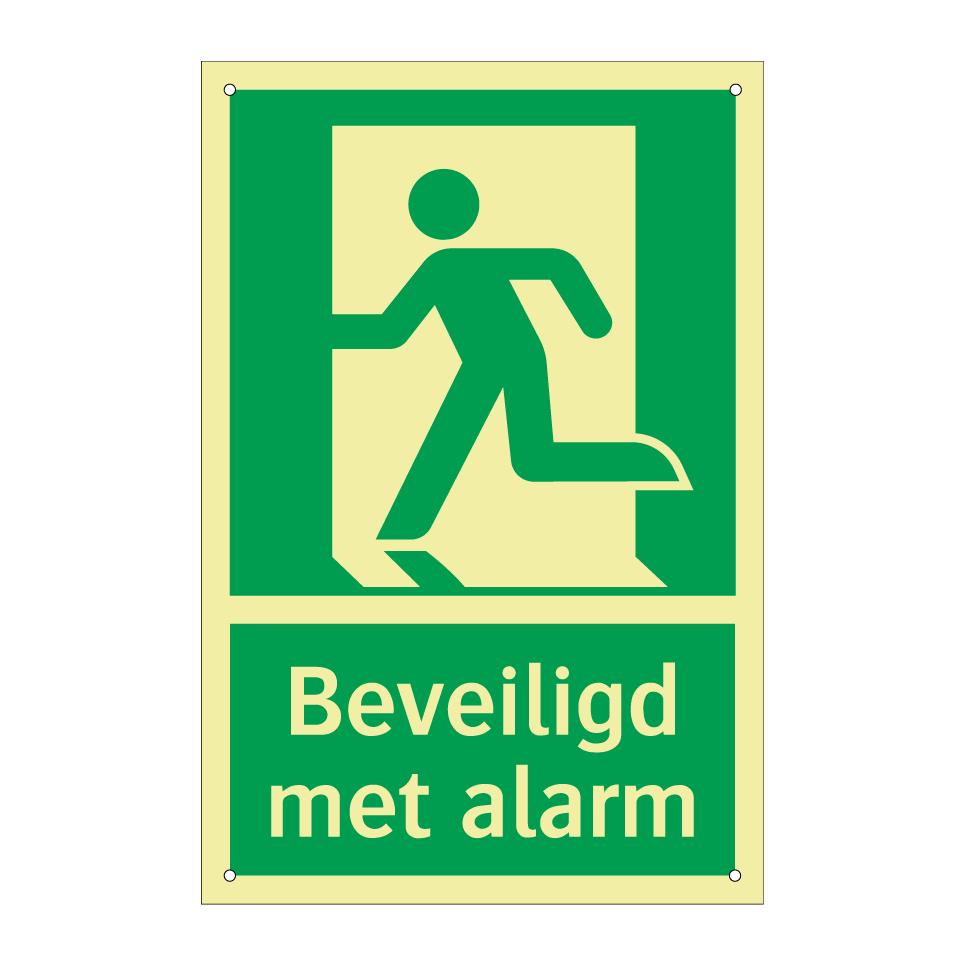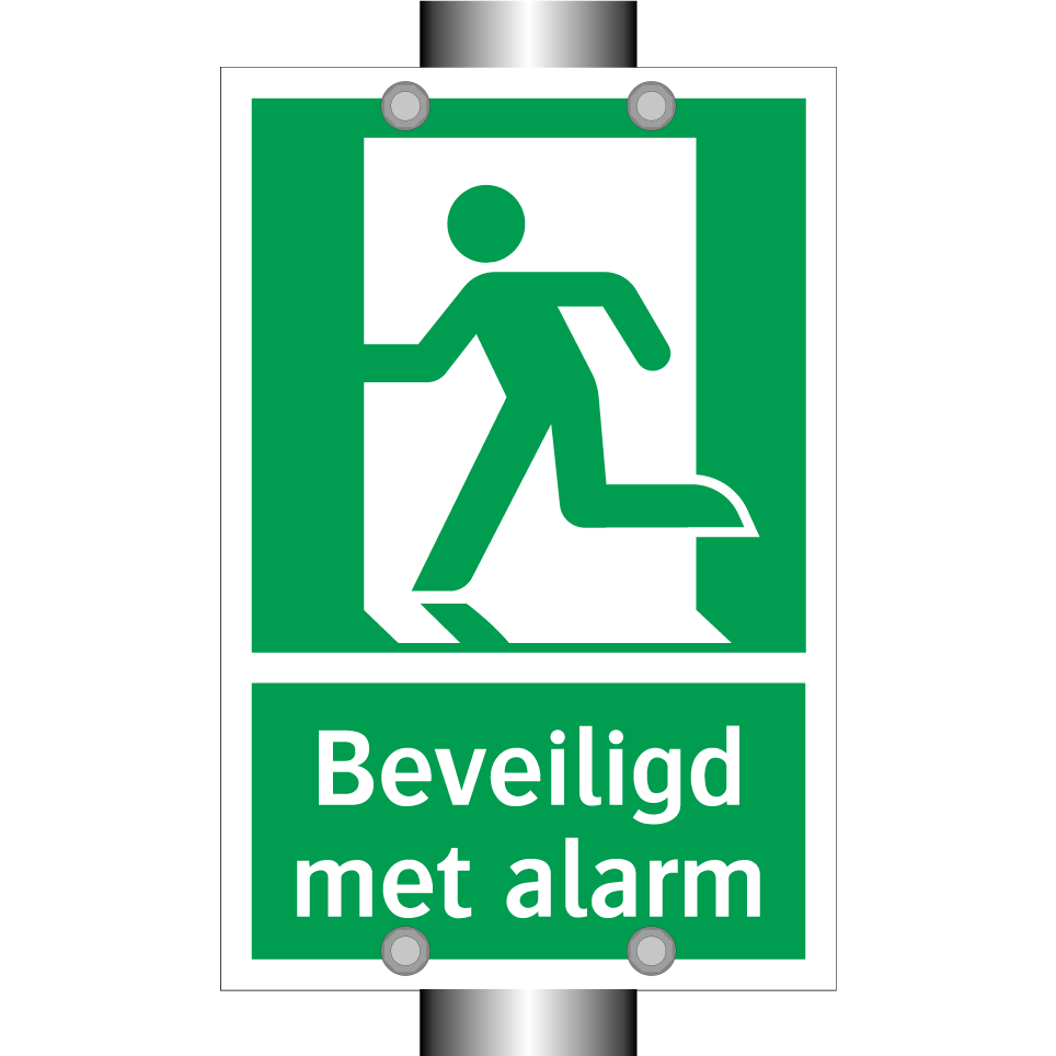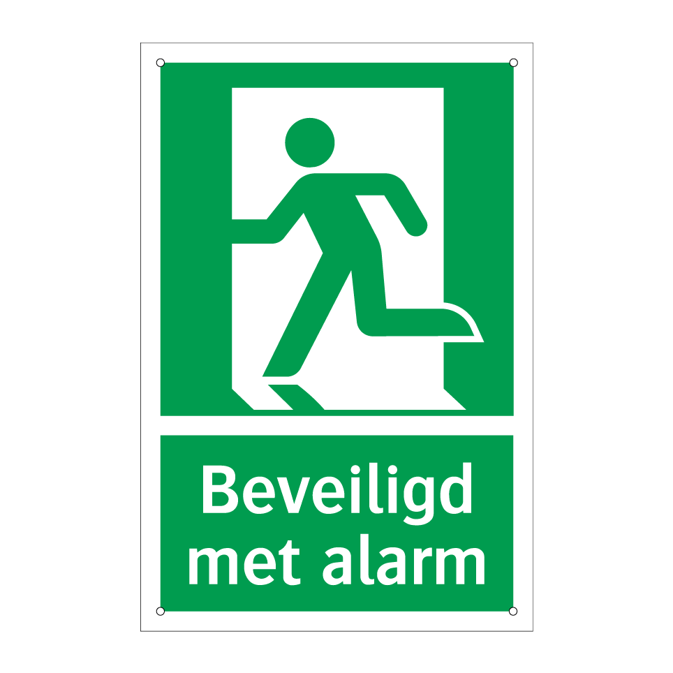 Deze noodbord is essentieel voor de veiligheid van uw gebouw. Het waarschuwt bezoekers en personeel dat het gebied beveiligd is met een alarmsysteem. Plaats deze noodbord op strategische locaties zoals ingangen, gangen, en nooduitgangen om de zichtbaarheid te maximaliseren. Ideaal voor kantoren, magazijnen, scholen en andere openbare ruimtes waar veiligheid een prioriteit is. Door de opvallende groene kleur en duidelijke witte tekst met symbool, trekt deze noodbord onmiddellijk de aandacht en zorgt het voor een snelle herkenning in geval van nood. Verhoog de veiligheid en informeer iedereen effectief met deze onmisbare noodbord.
