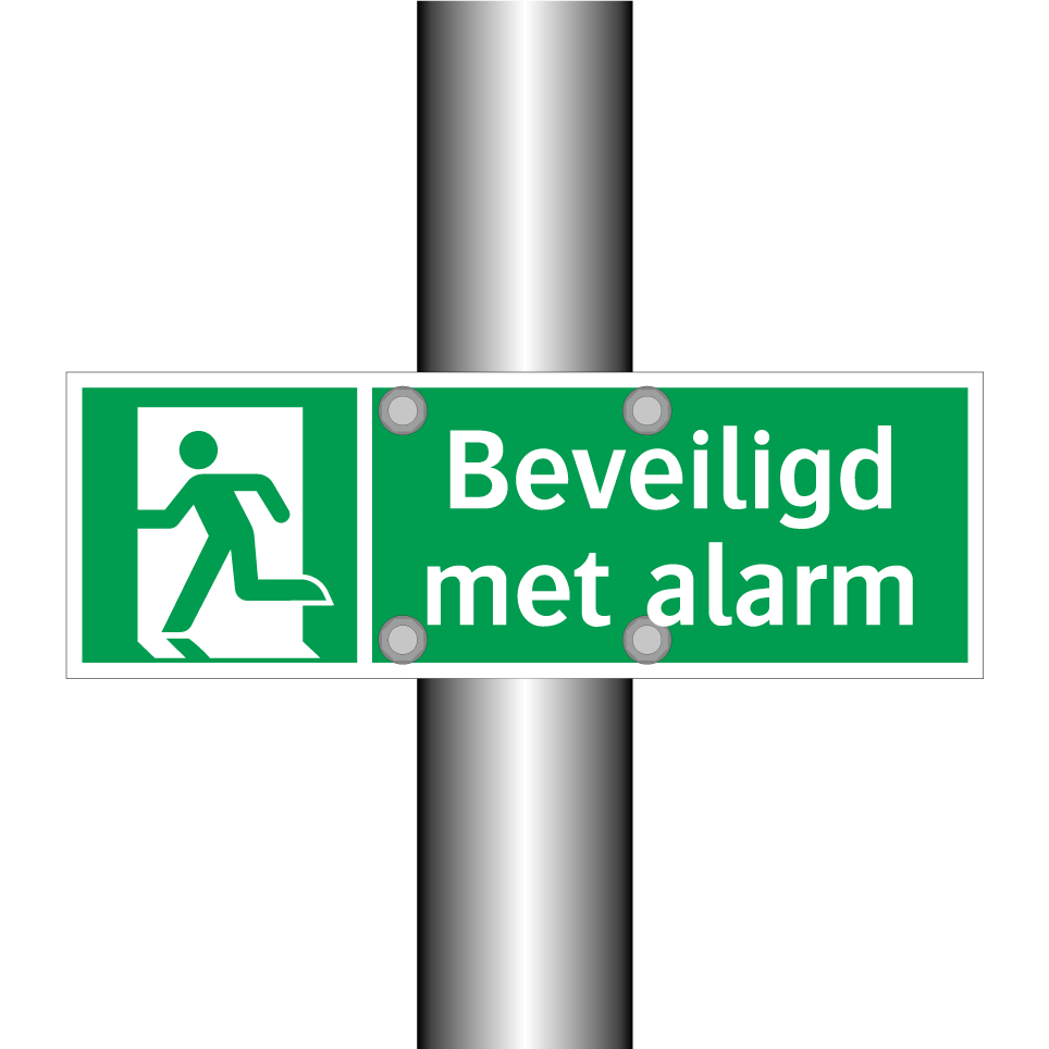 Deze noodbord is essentieel voor de veiligheid van uw gebouw. Het waarschuwt bezoekers en personeel dat het gebied beveiligd is met een alarmsysteem. Plaats deze noodbord op strategische locaties zoals ingangen, gangen, en nooduitgangen om de zichtbaarheid te maximaliseren. Ideaal voor kantoren, magazijnen, scholen en andere openbare ruimtes waar veiligheid een prioriteit is. Door de opvallende groene kleur en duidelijke witte tekst met symbool, trekt deze noodbord onmiddellijk de aandacht en zorgt het voor een snelle herkenning in geval van nood. Verhoog de veiligheid en informeer iedereen effectief met deze onmisbare noodbord.