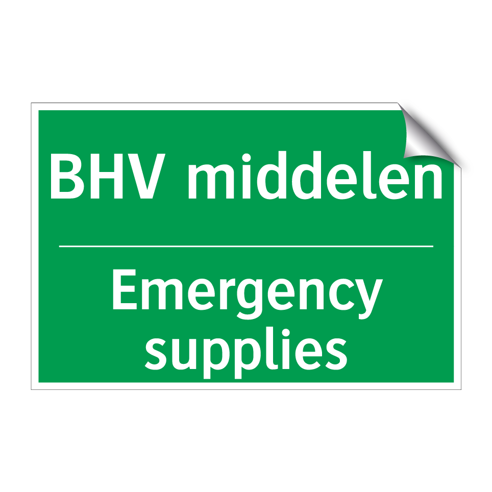 Noodbord met tekst BHV middelen / Emergency supplies