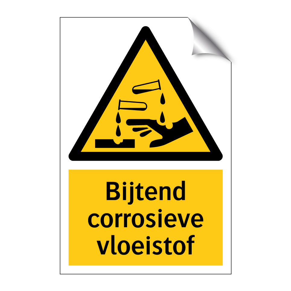 Waarschuwingsbord met de tekst Bijtend corrosieve vloeistof