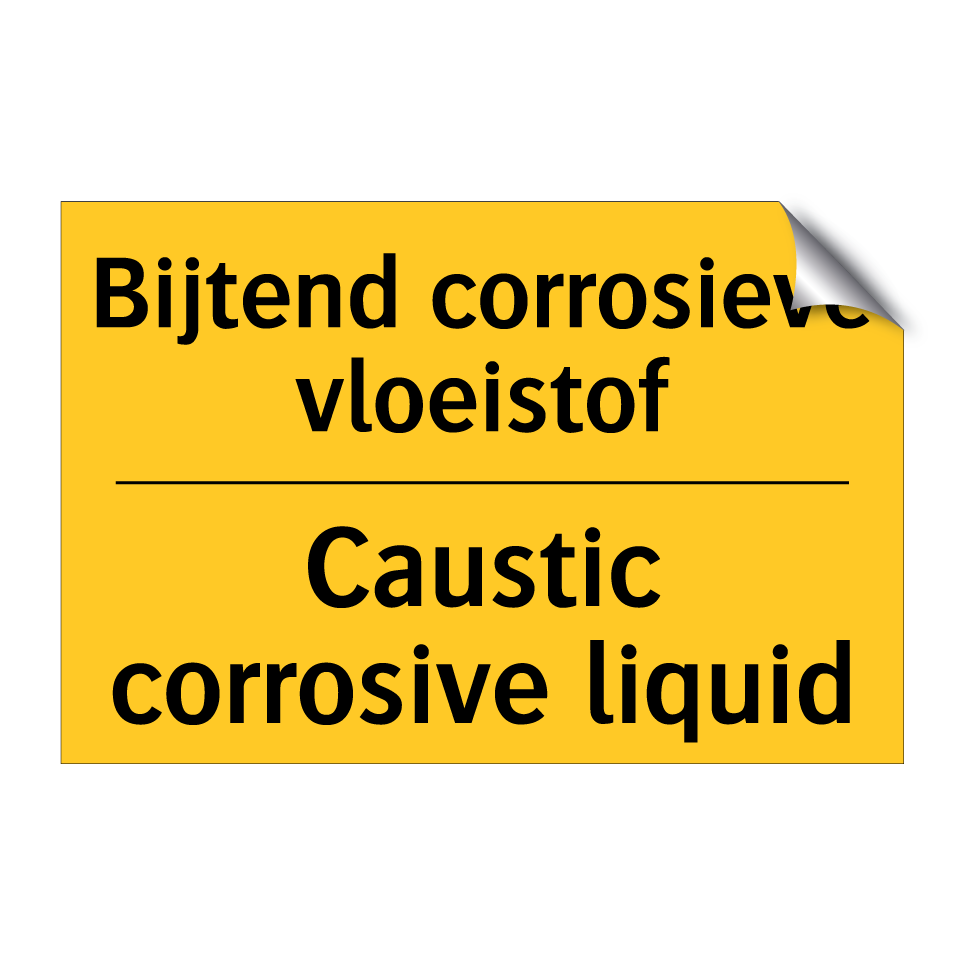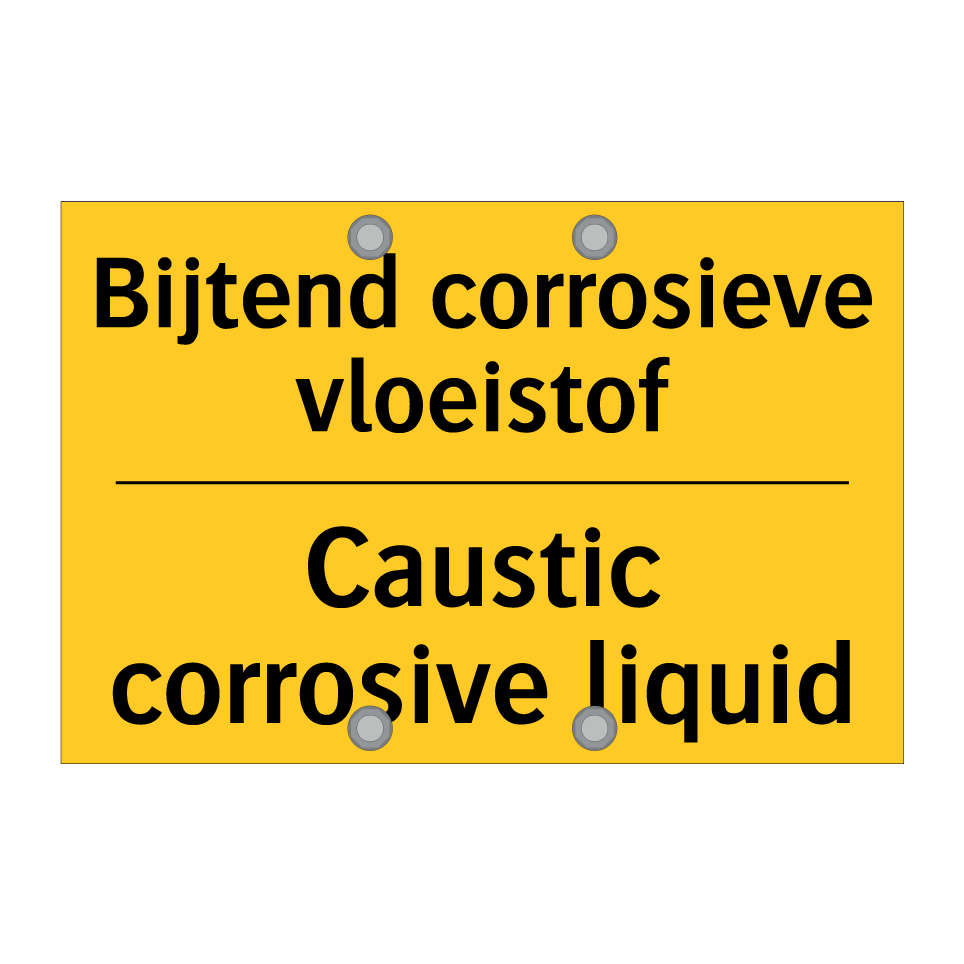 Waarschuwingsbord met de tekst Bijtend corrosieve vloeistof / Caustic corrosive liquid