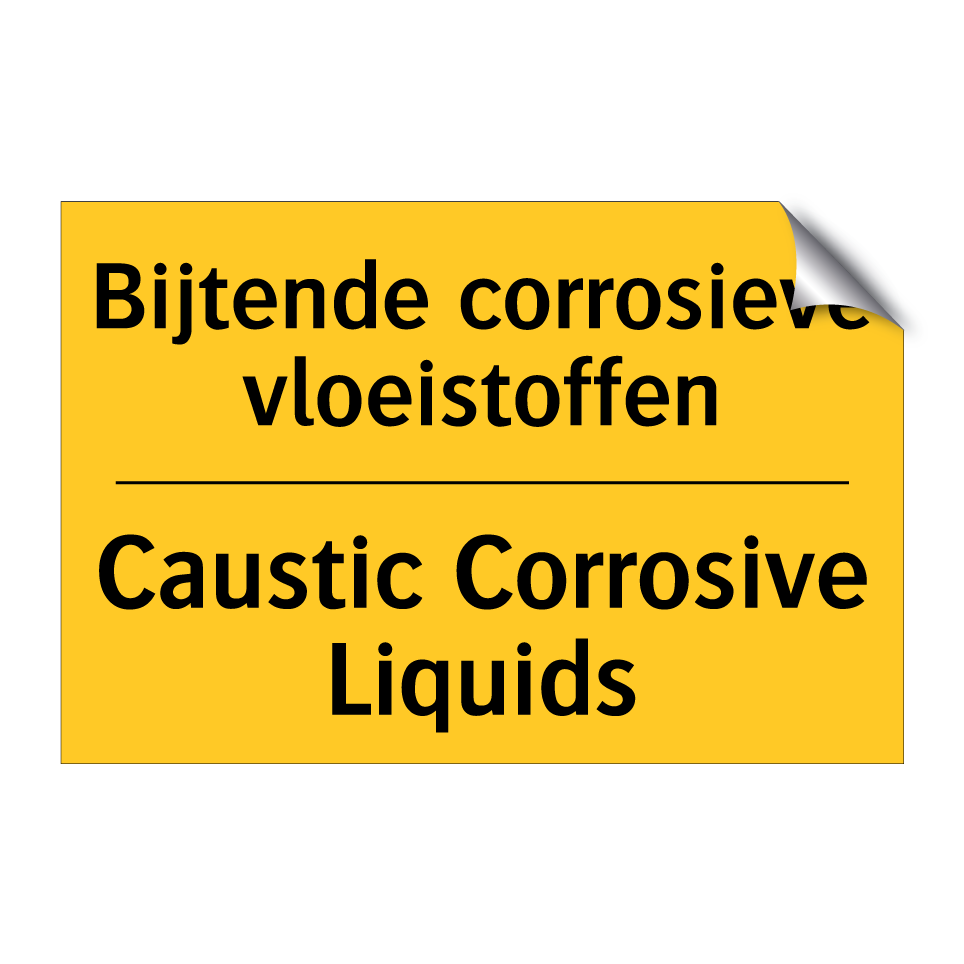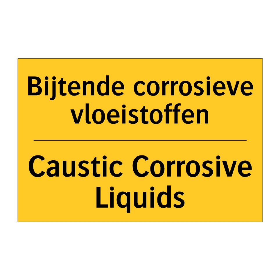 Waarschuwingsbord met de tekst Bijtende corrosieve vloeistoffen / Caustic Corrosive Liquids
