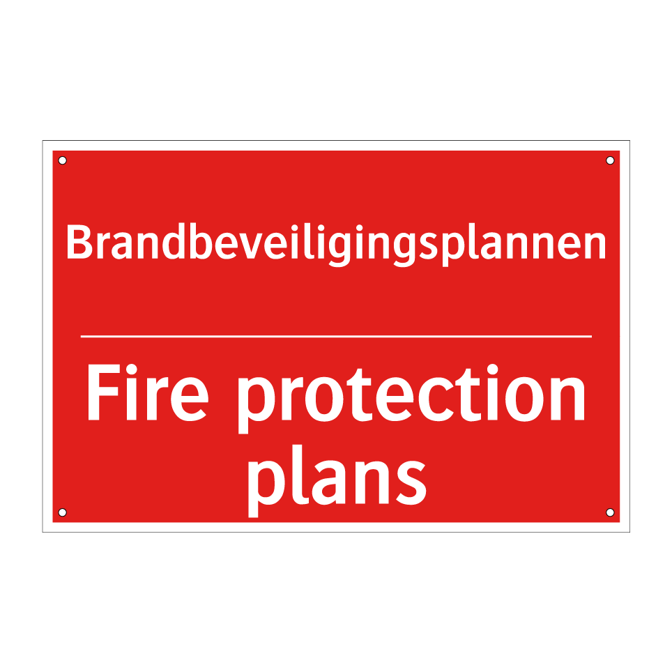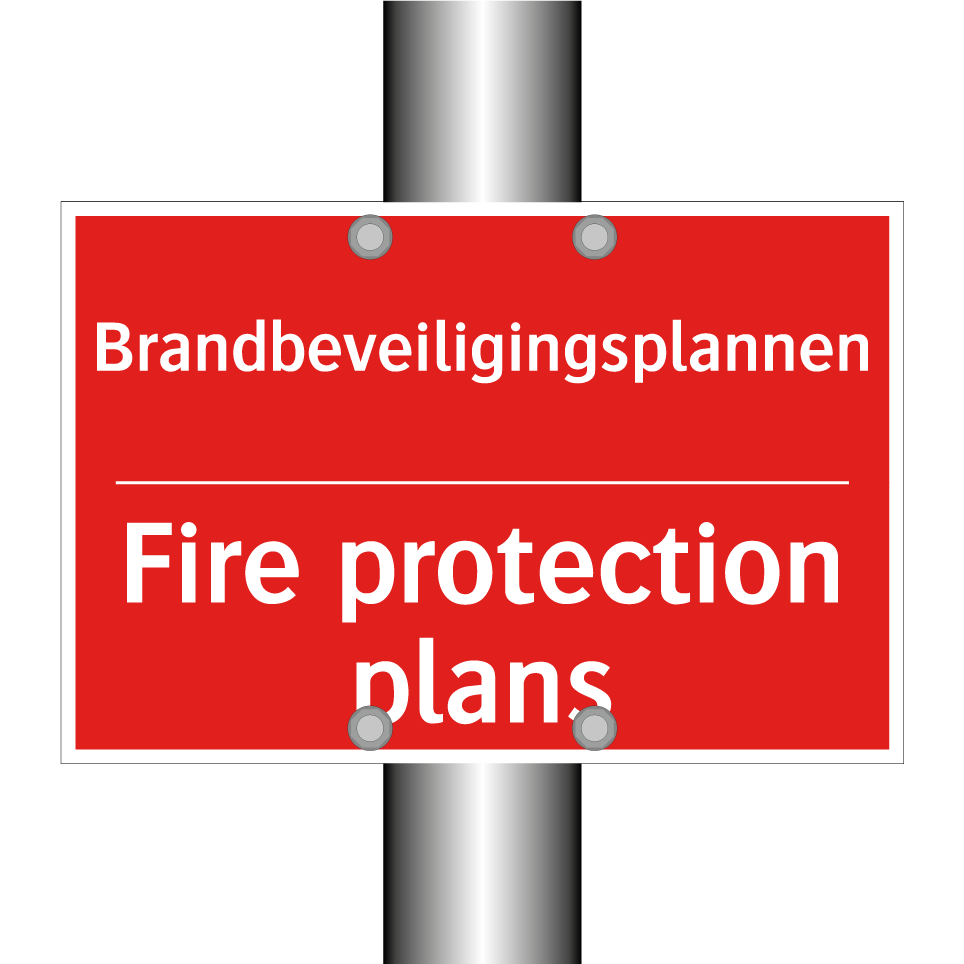 Brandbord met tekst Brandbeveiligingsplannen / Fire protection plans