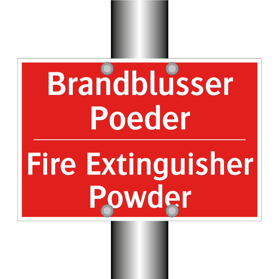 Brandbord met tekst Brandblusser Poeder / Fire Extinguisher Powder