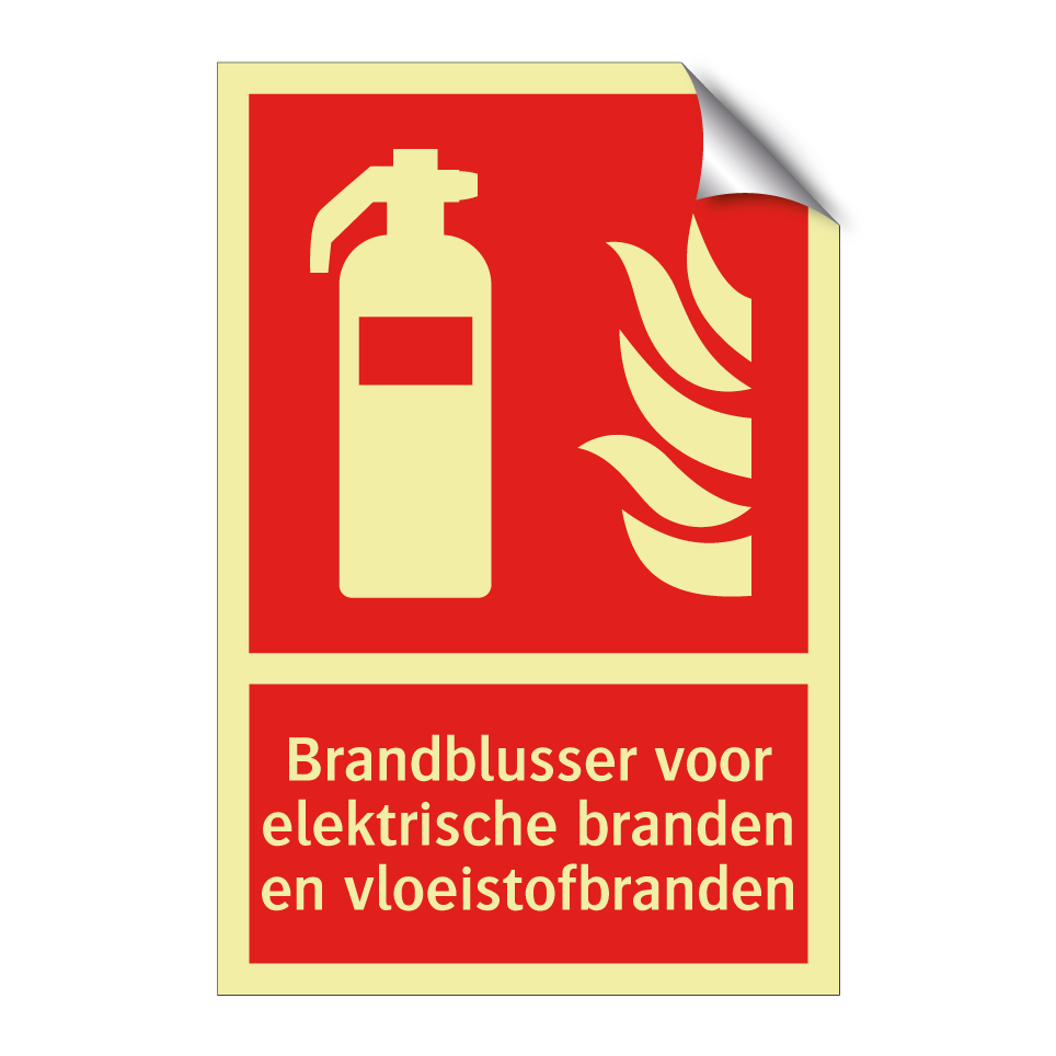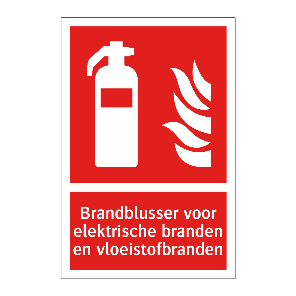 Brandbord met tekst Brandblusser voor elektrische branden en vloeistofbranden