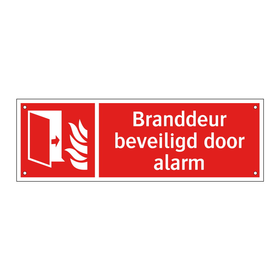 Deze opvallende brandsignalisatie is essentieel voor de veiligheid in gebouwen. Het waarschuwt duidelijk dat de branddeur beveiligd is door een alarm, wat helpt om ongeoorloofd gebruik te voorkomen. Deze brandbord is ideaal voor gebruik in kantoren, scholen, ziekenhuizen en andere openbare ruimtes waar brandveiligheid van groot belang is. Plaats het bij ingangen, gangen of nooduitgangen om ervoor te zorgen dat iedereen op de hoogte is van de beveiligingsmaatregelen. Door de heldere rode achtergrond en witte tekst is de boodschap direct zichtbaar en begrijpelijk, wat bijdraagt aan een veilige omgeving.