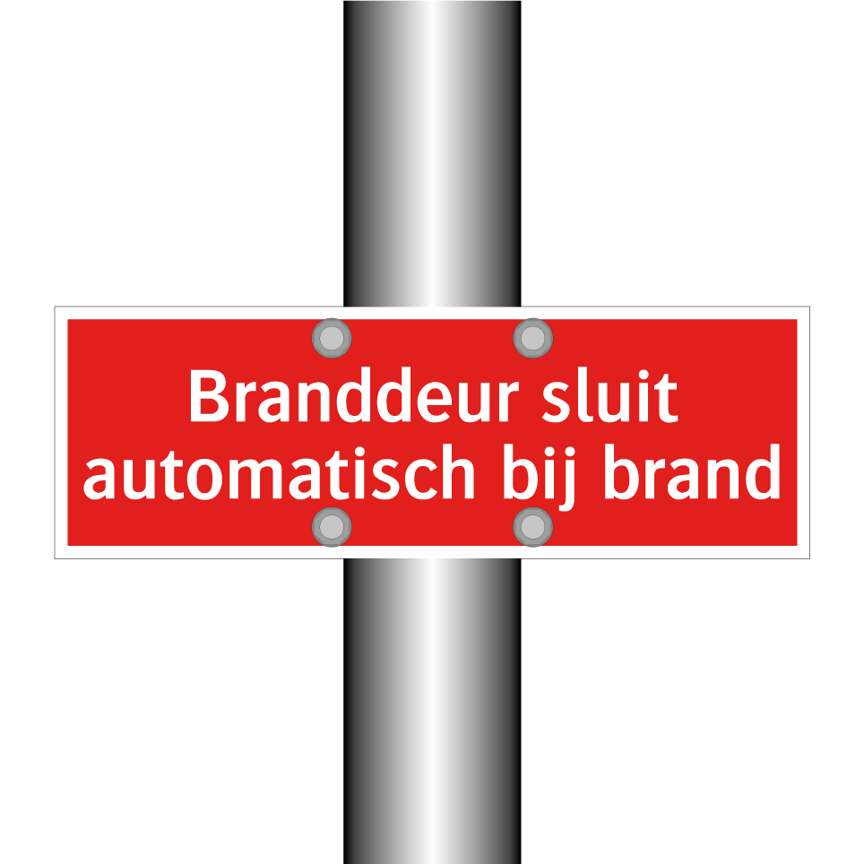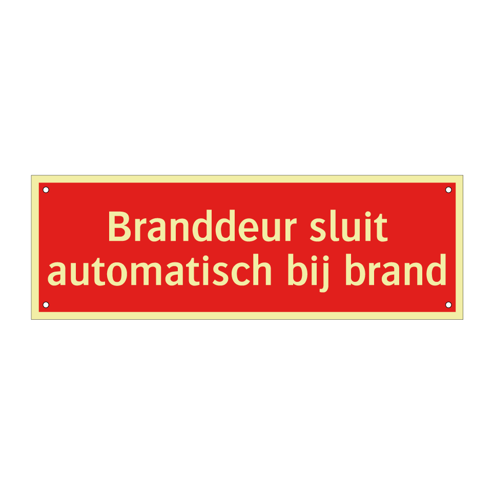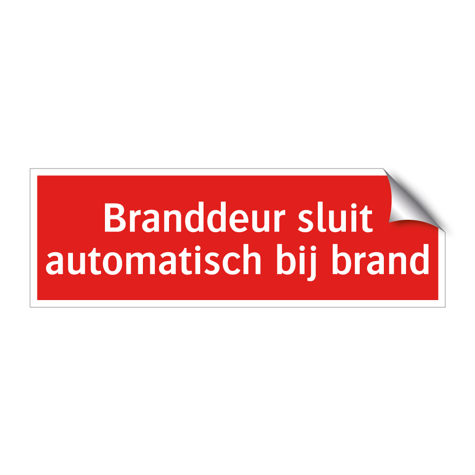 Brandbord met tekst Branddeur sluit automatisch bij brand