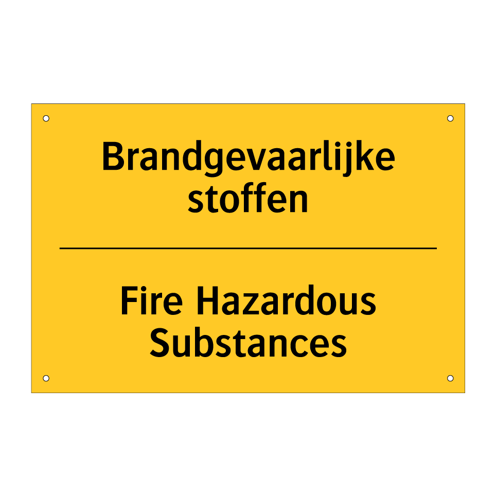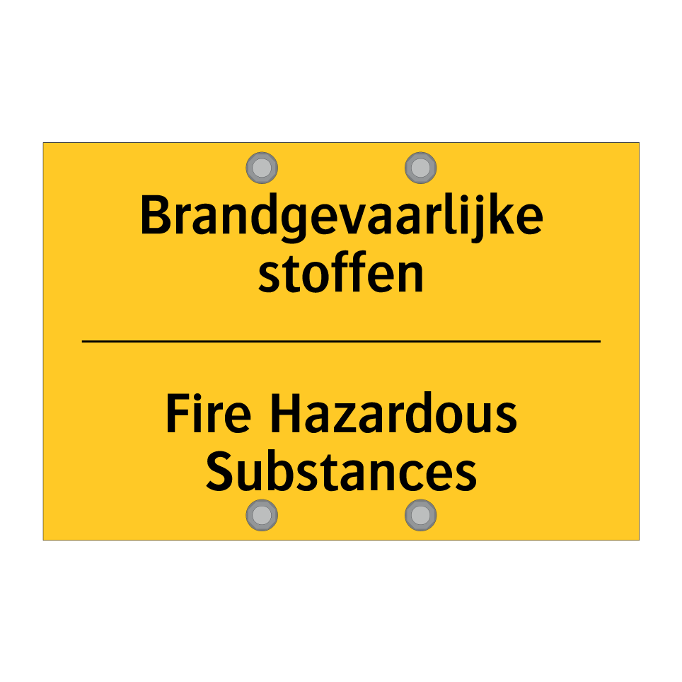 Waarschuwingsbord met de tekst Brandgevaarlijke stoffen / Fire Hazardous Substances