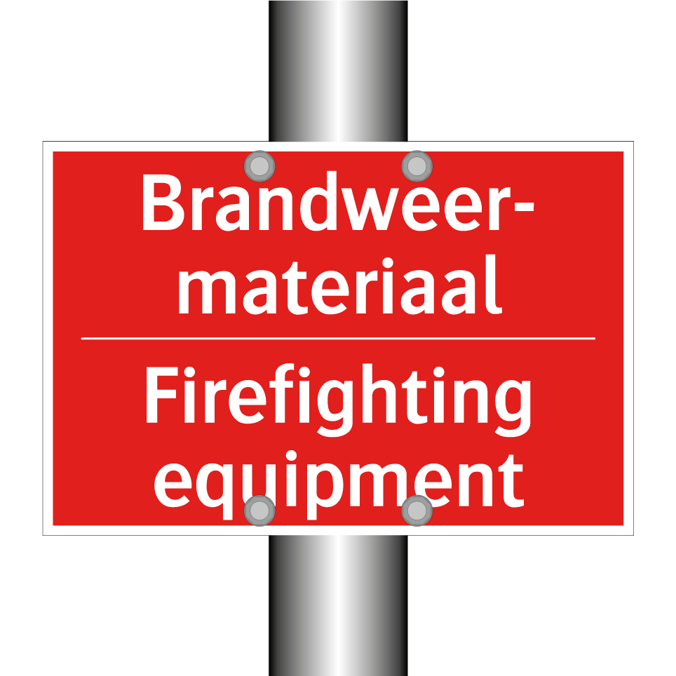 Brandbord met tekst Brandweer- materiaal / Firefighting equipment
