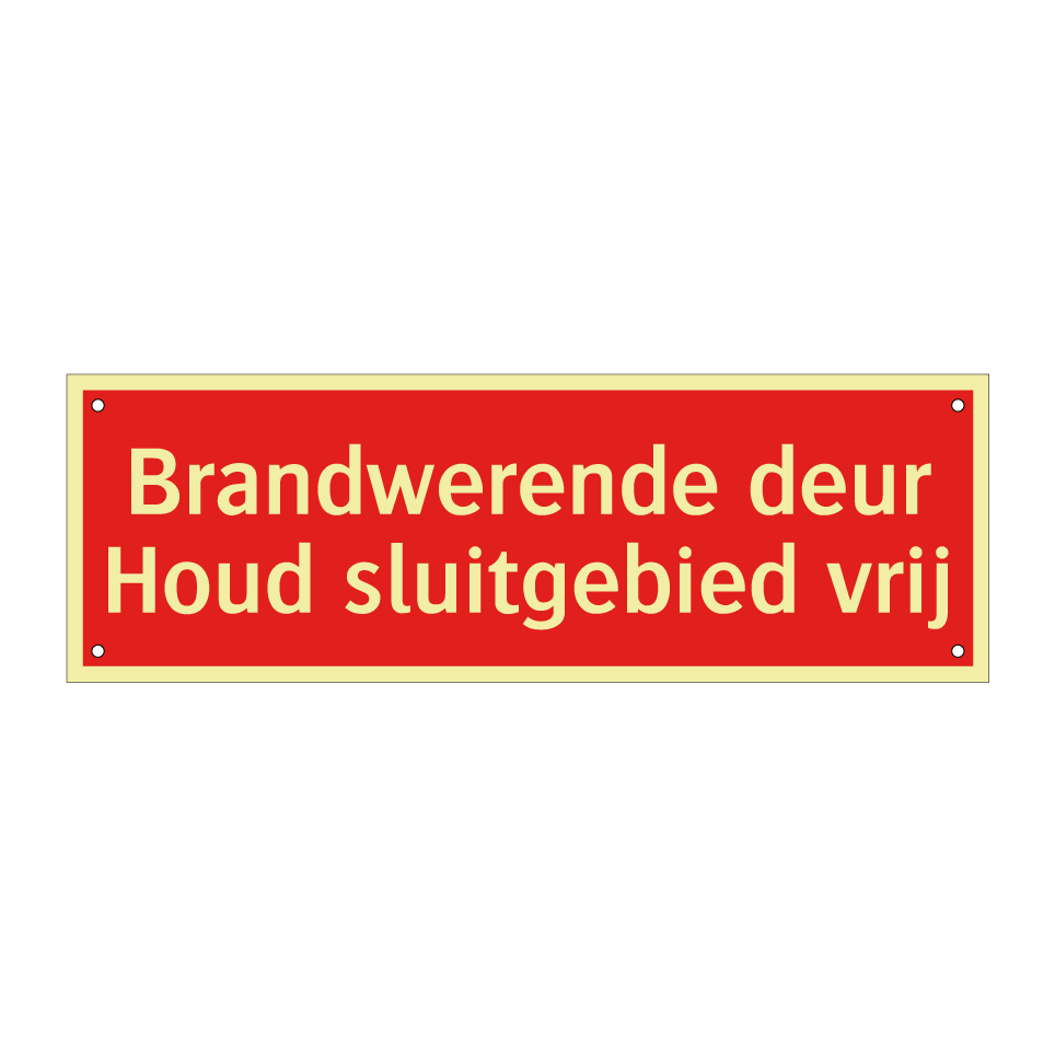 Brandbord met tekst Brandwerende deur Houd sluitgebied vrij