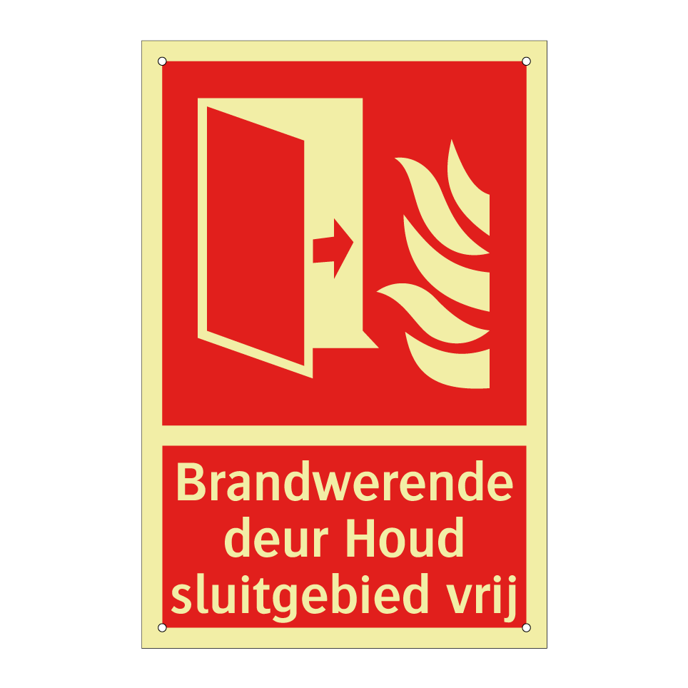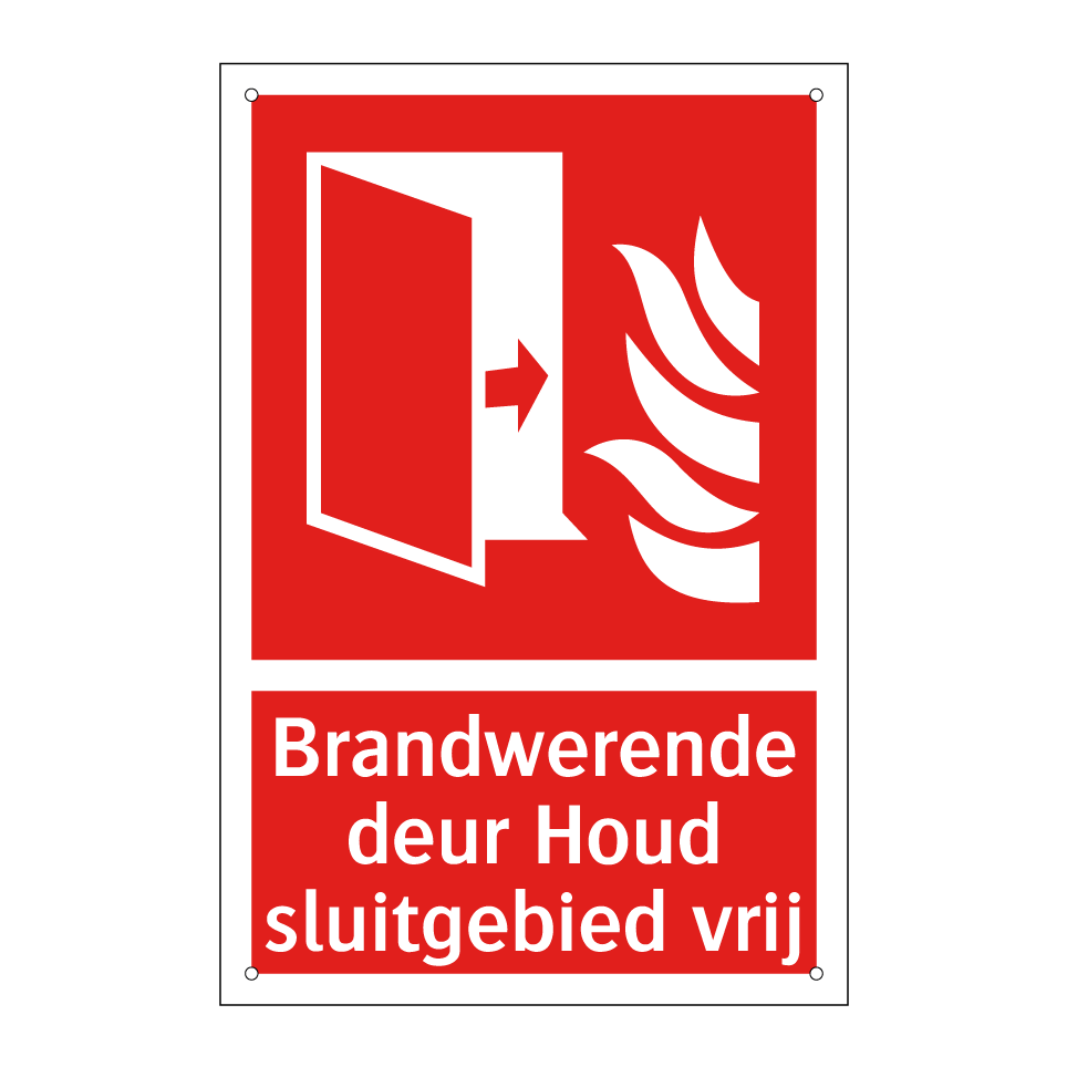 Brandbord met tekst Brandwerende deur Houd sluitgebied vrij