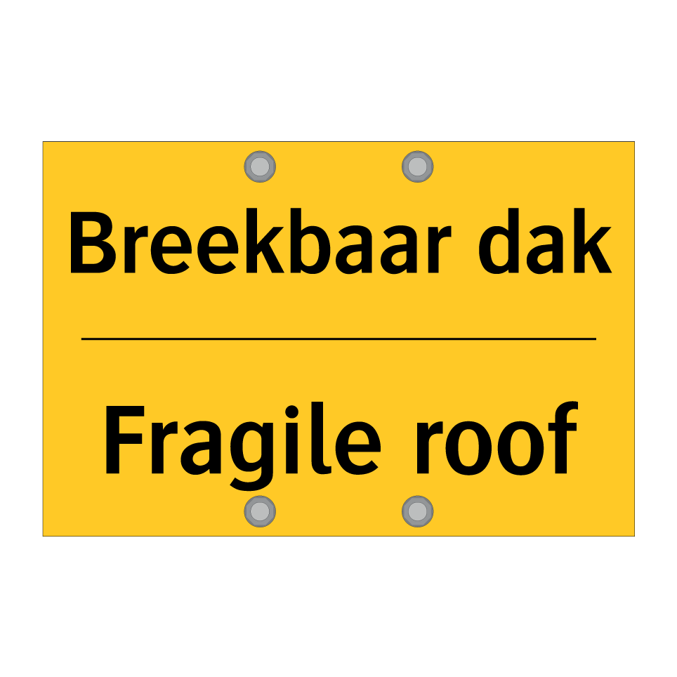 Waarschuwingsbord met de tekst Breekbaar dak / Fragile roof