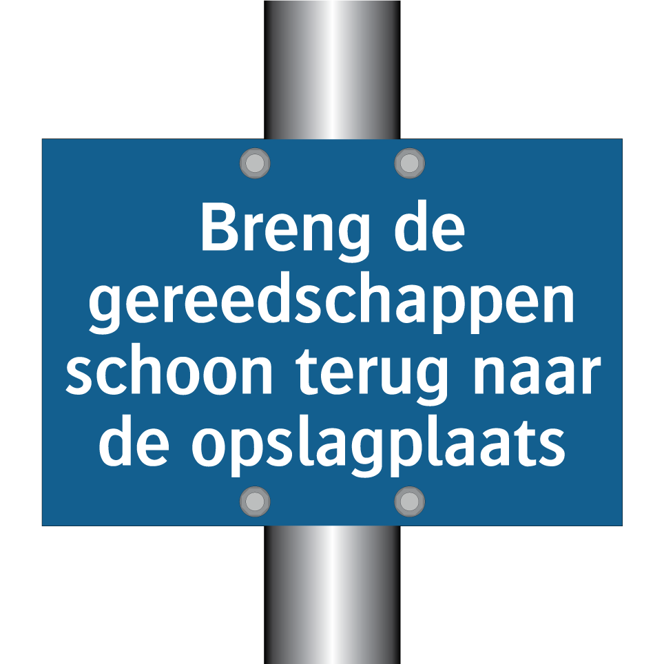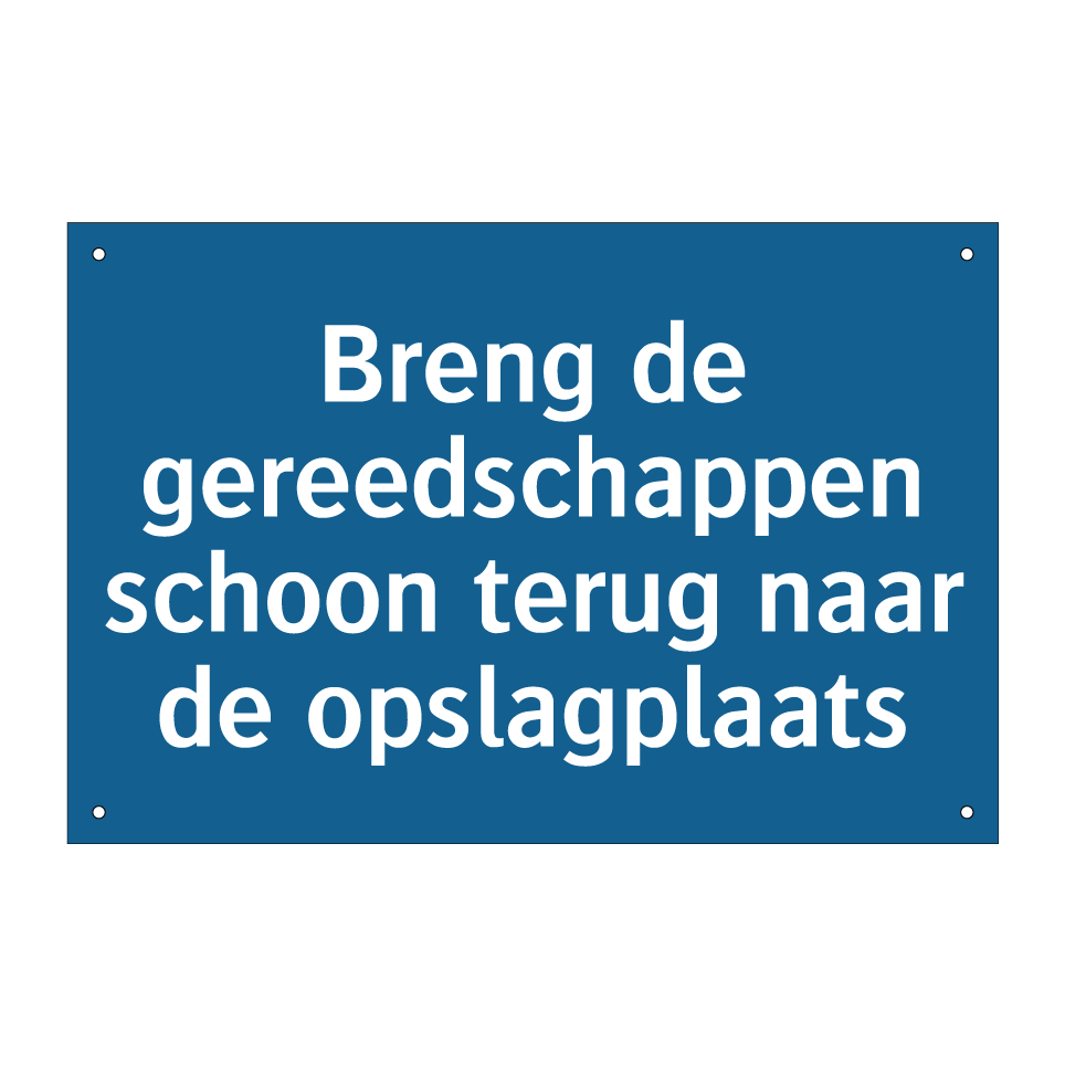 Verplichte bord met de tekst Breng de gereedschappen schoon terug naar de opslagplaats