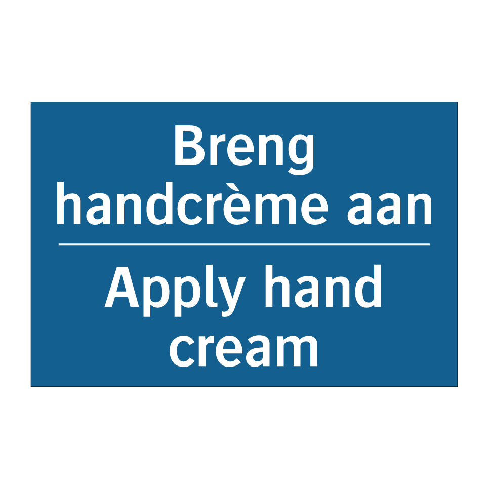 Verplichte bord met de tekst Breng handcrème aan - Apply hand cream