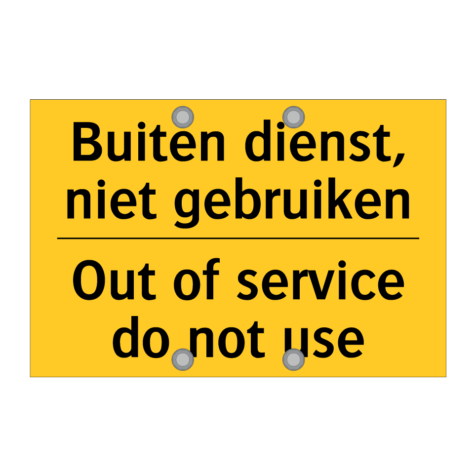 Waarschuwingsbord met de tekst Buiten dienst, niet gebruiken / Out of service do not use