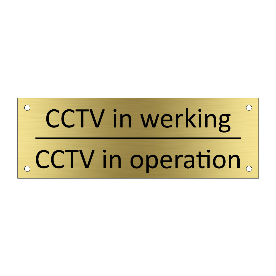 Informatiebord met tekst in het nederlands en engels. Dit bord luidt: CCTV in werking evenals met de engelse vertaling CCTV in operation.