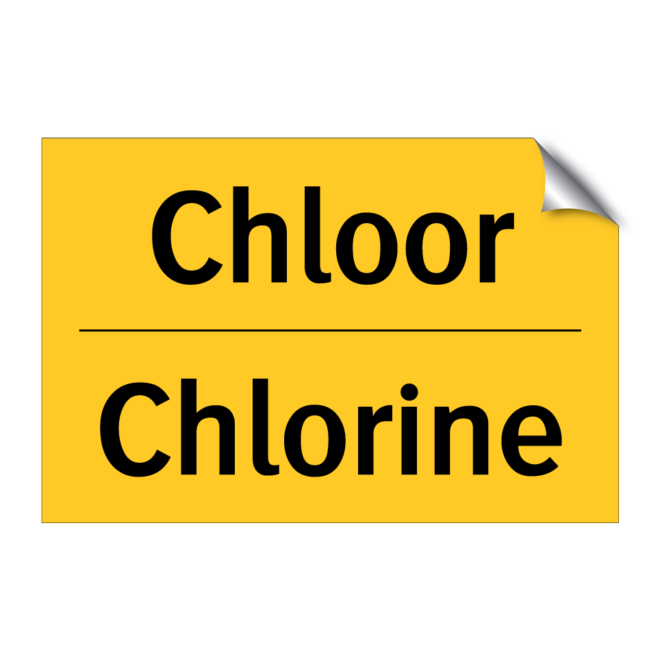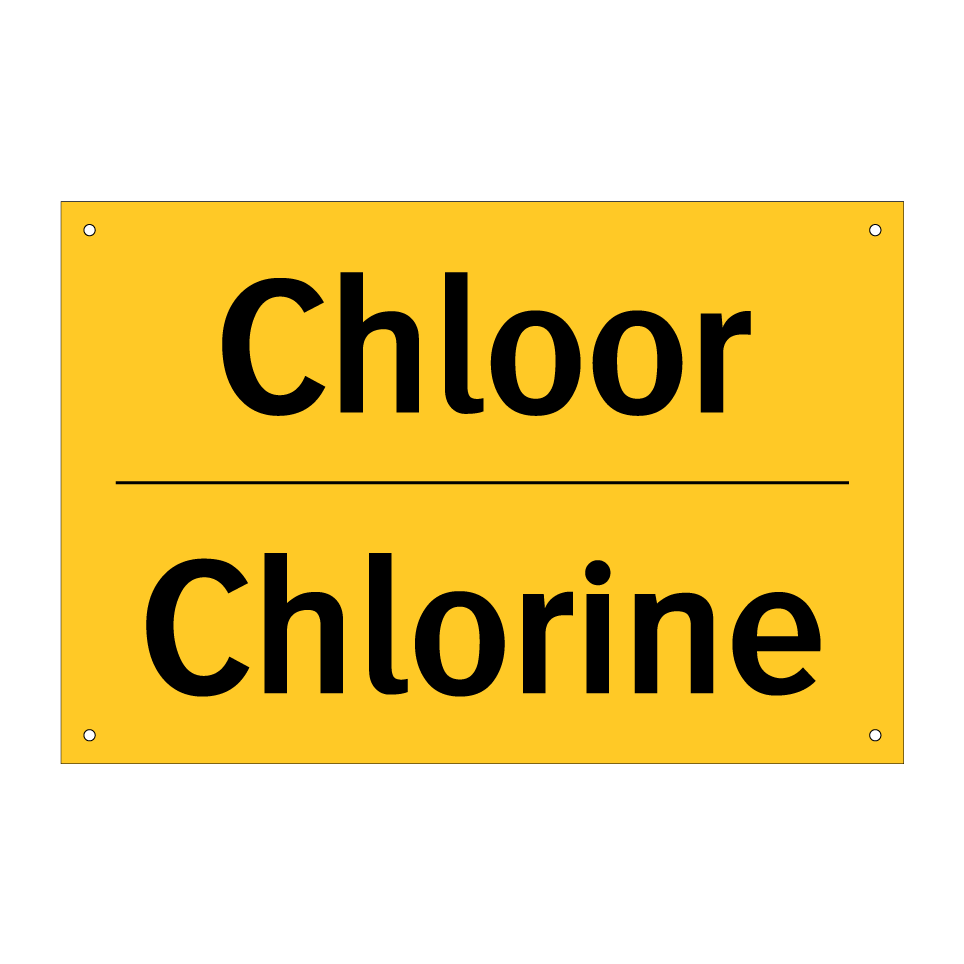 Waarschuwingsbord met de tekst Chloor / Chlorine