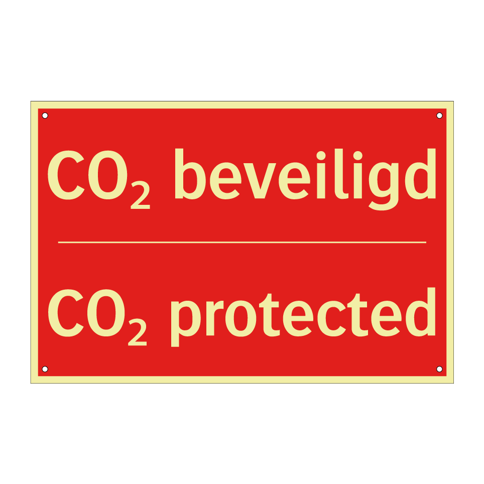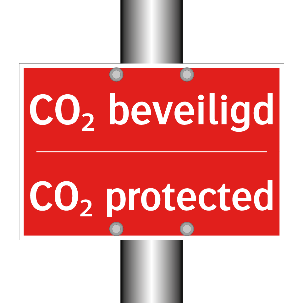Brandbord met tekst CO₂ beveiligd - CO₂ protected